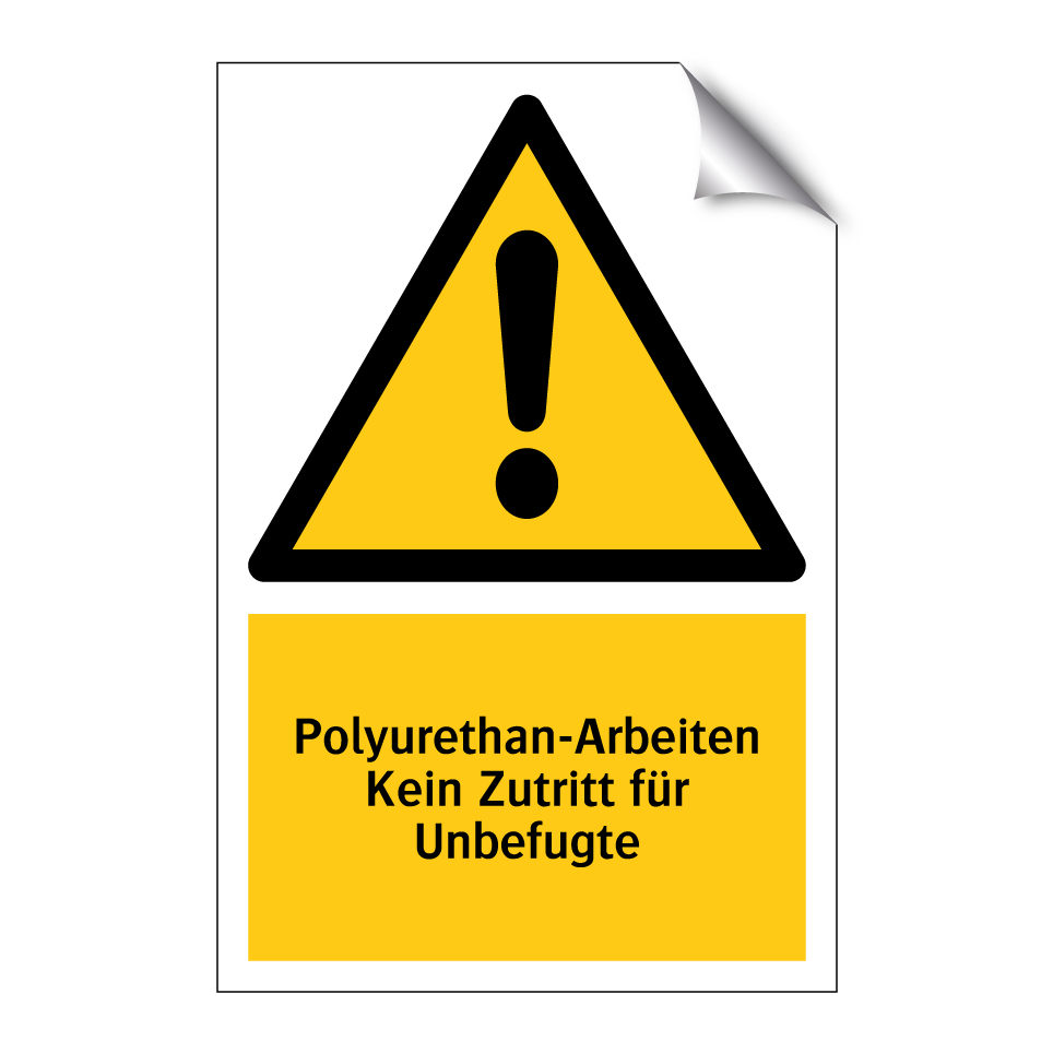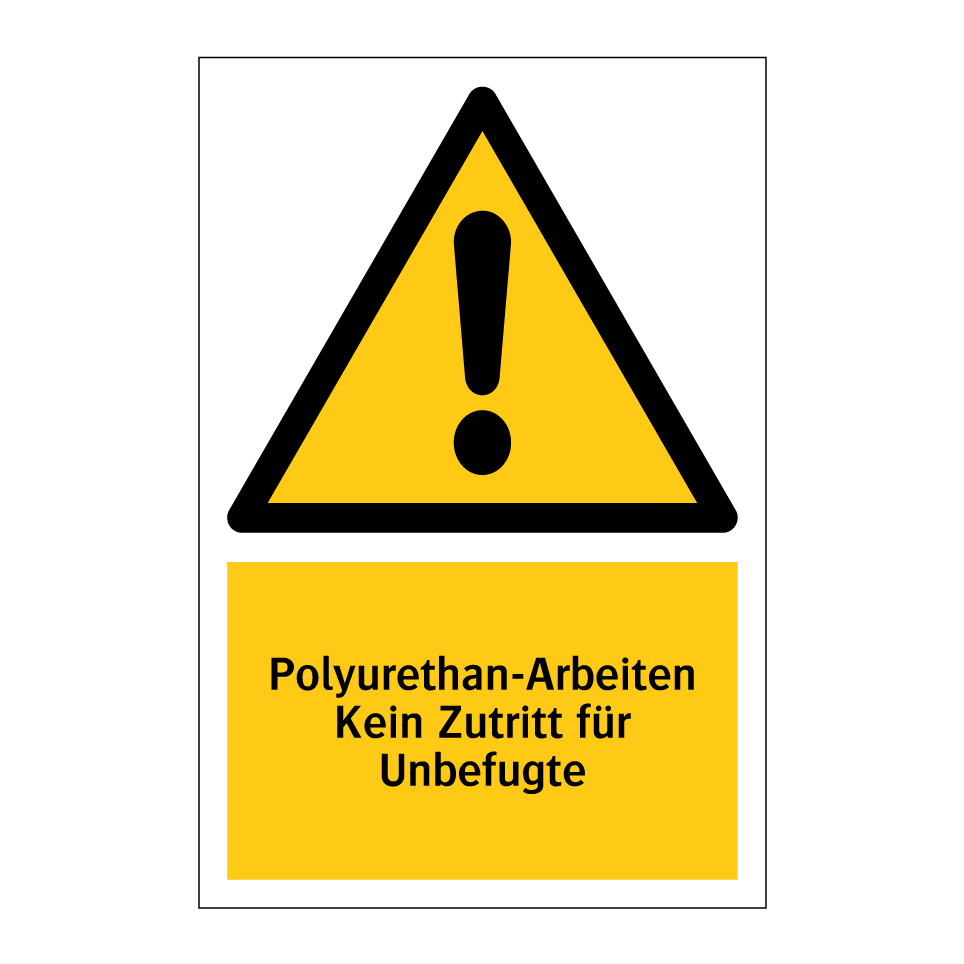 Warnschild mit dem Text Polyurethan-Arbeiten Kein Zutritt für Unbefugte