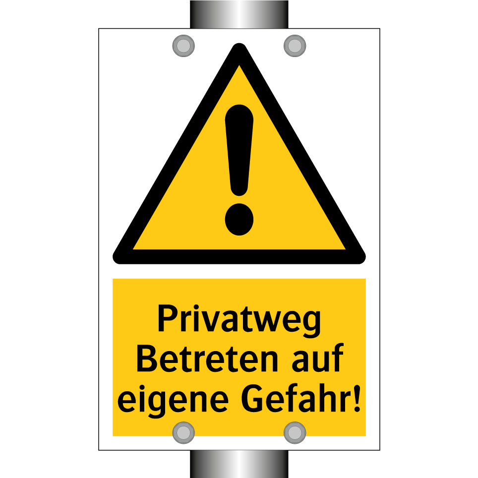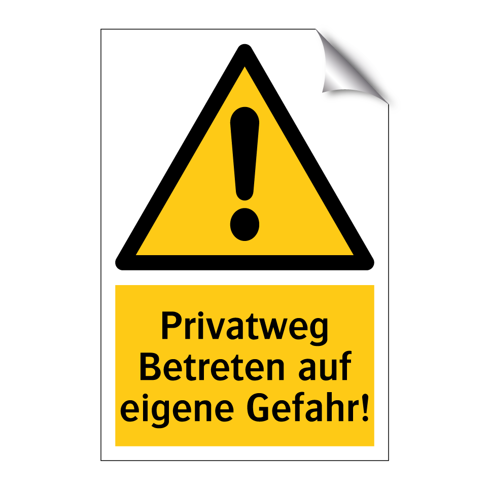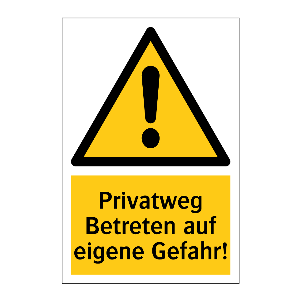 Warnschild mit dem Text Privatweg Betreten auf eigene Gefahr!