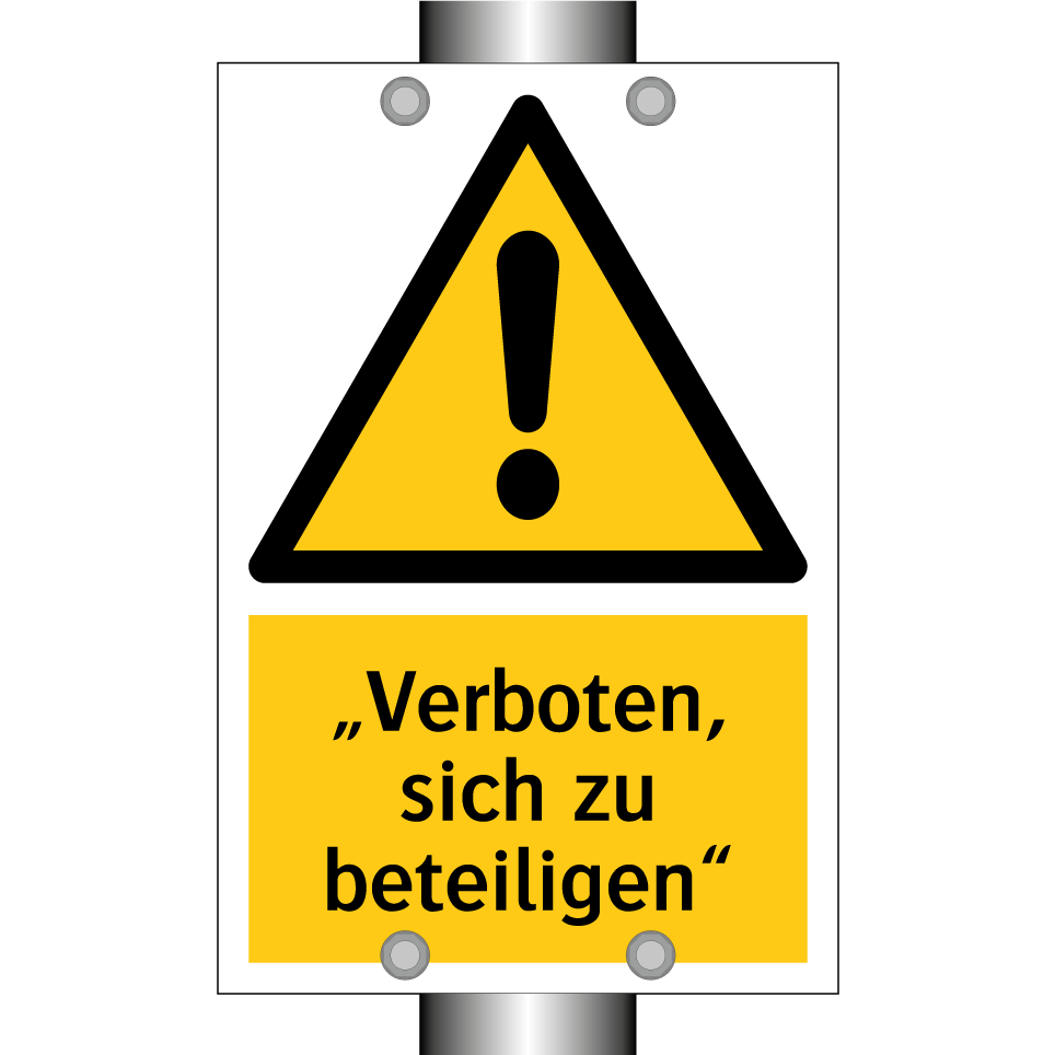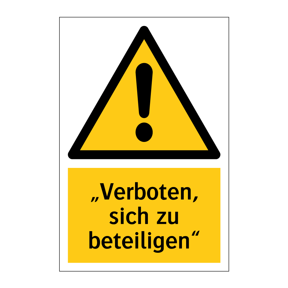 Warnschild mit dem Text „Verboten, sich zu beteiligen“