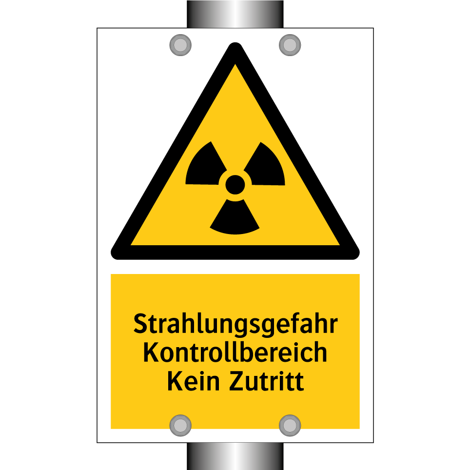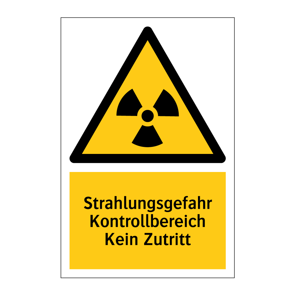 Warnschild mit dem Text Strahlungsgefahr Kontrollbereich Kein Zutritt