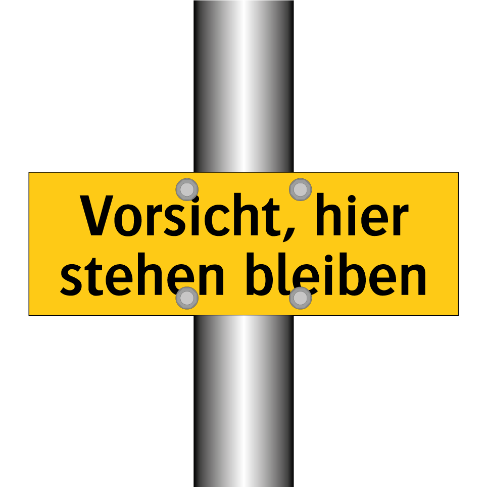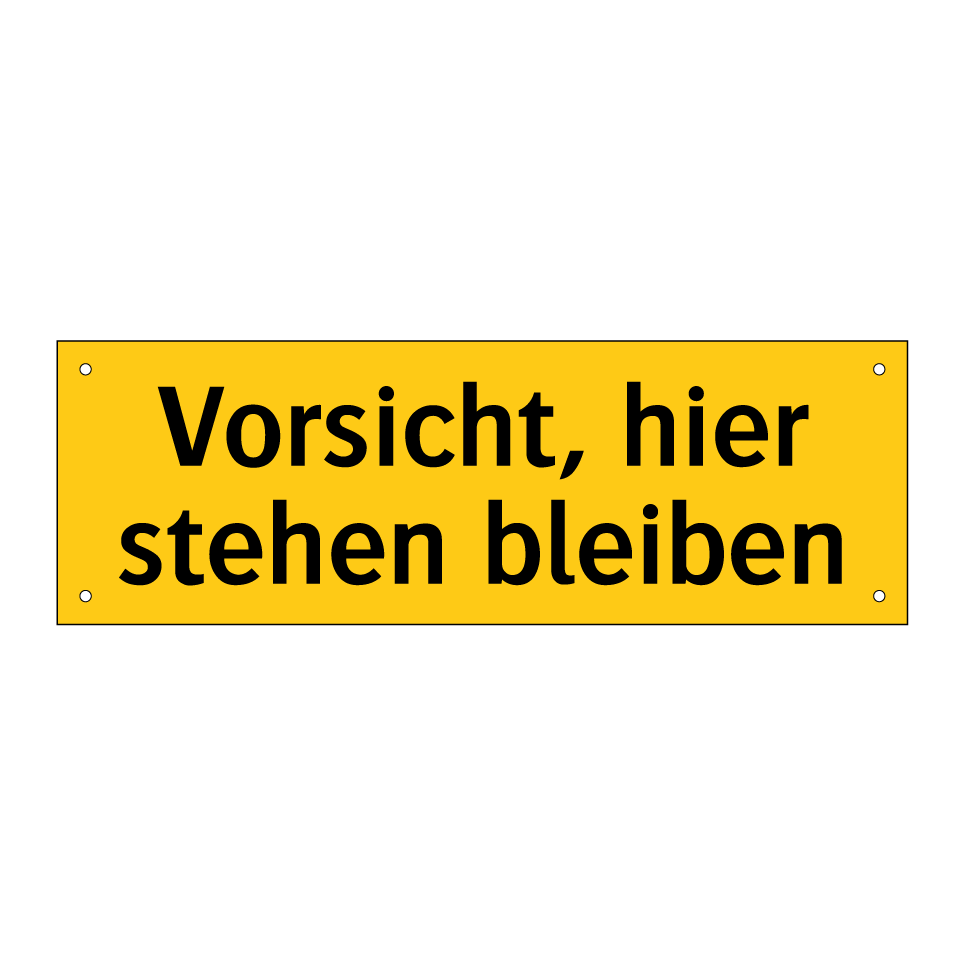 Warnschild mit dem Text Vorsicht, hier stehen bleiben