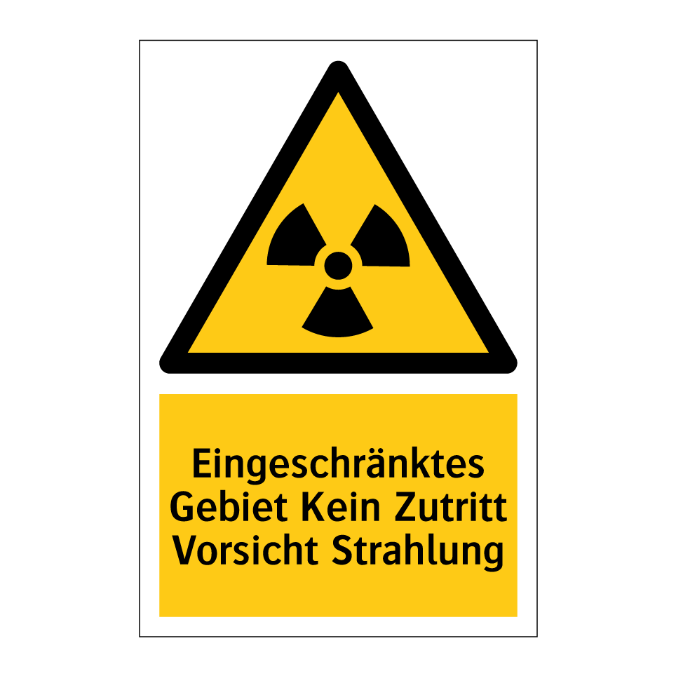 Warnschild mit dem Text Eingeschränktes Gebiet Kein Zutritt Vorsicht Strahlung