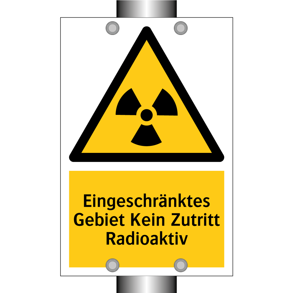 Warnschild mit dem Text Eingeschränktes Gebiet Kein Zutritt Radioaktiv