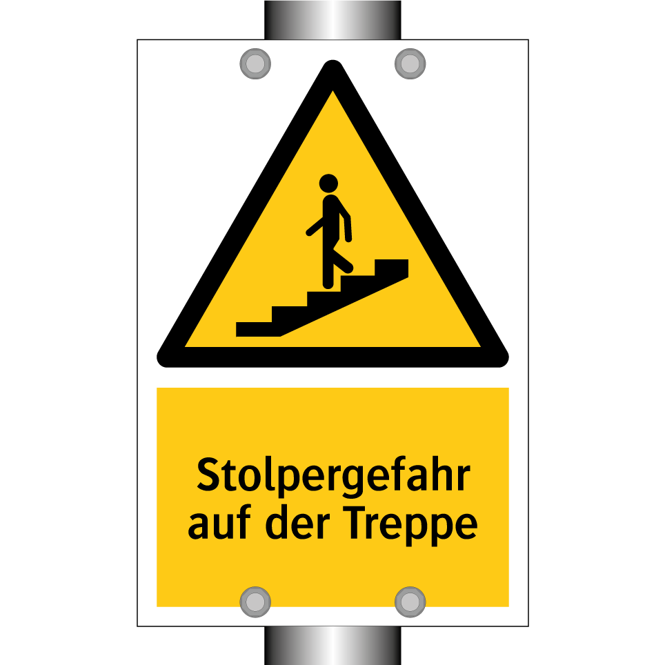 Warnschild mit dem Text Stolpergefahr auf der Treppe