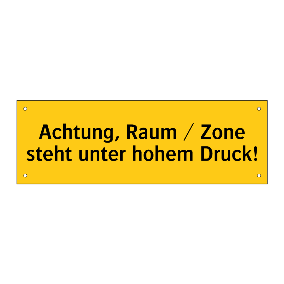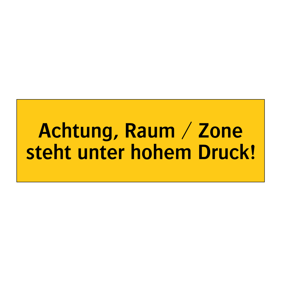 Warnschild mit dem Text Achtung, Raum / Zone steht unter hohem Druck!