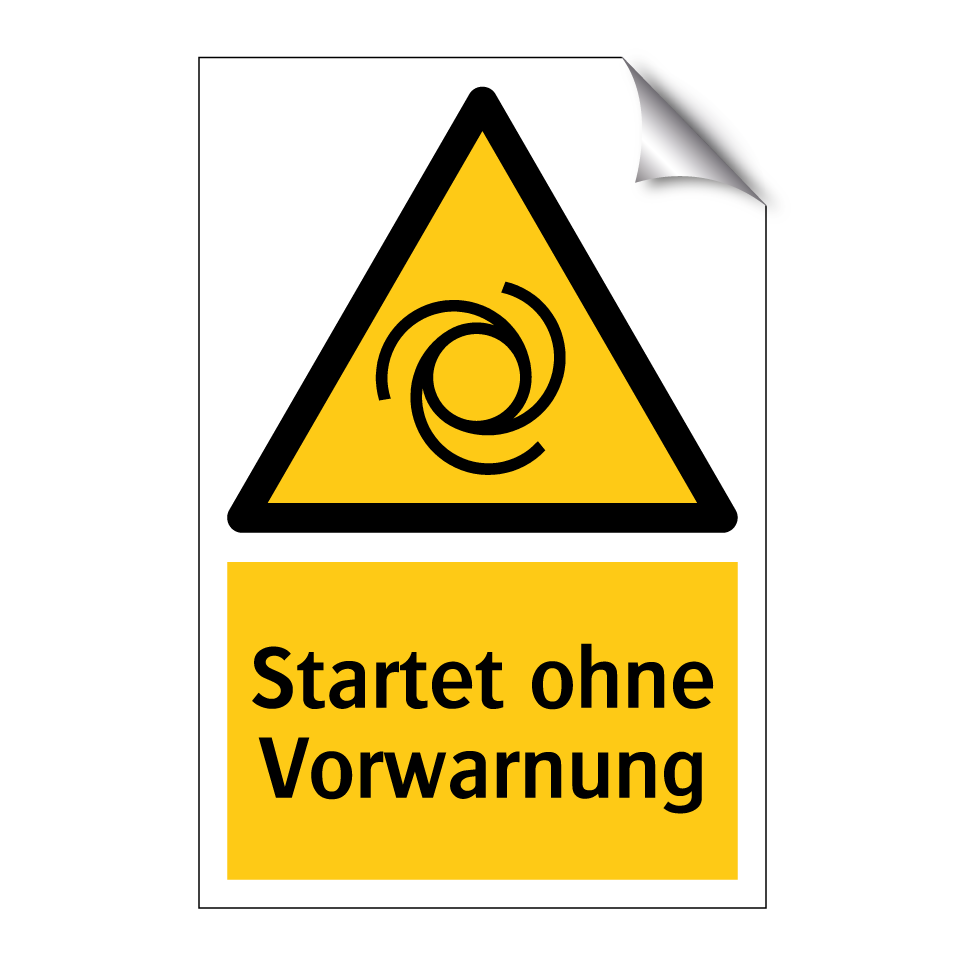 Warnschild mit dem Text Startet ohne Vorwarnung