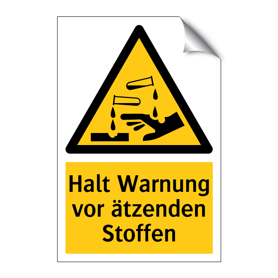 Warnschild mit dem Text Halt Warnung vor ätzenden Stoffen