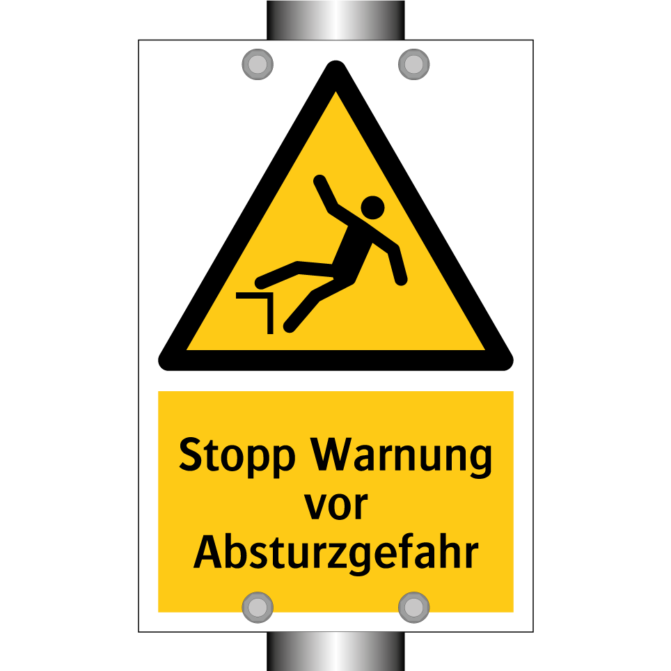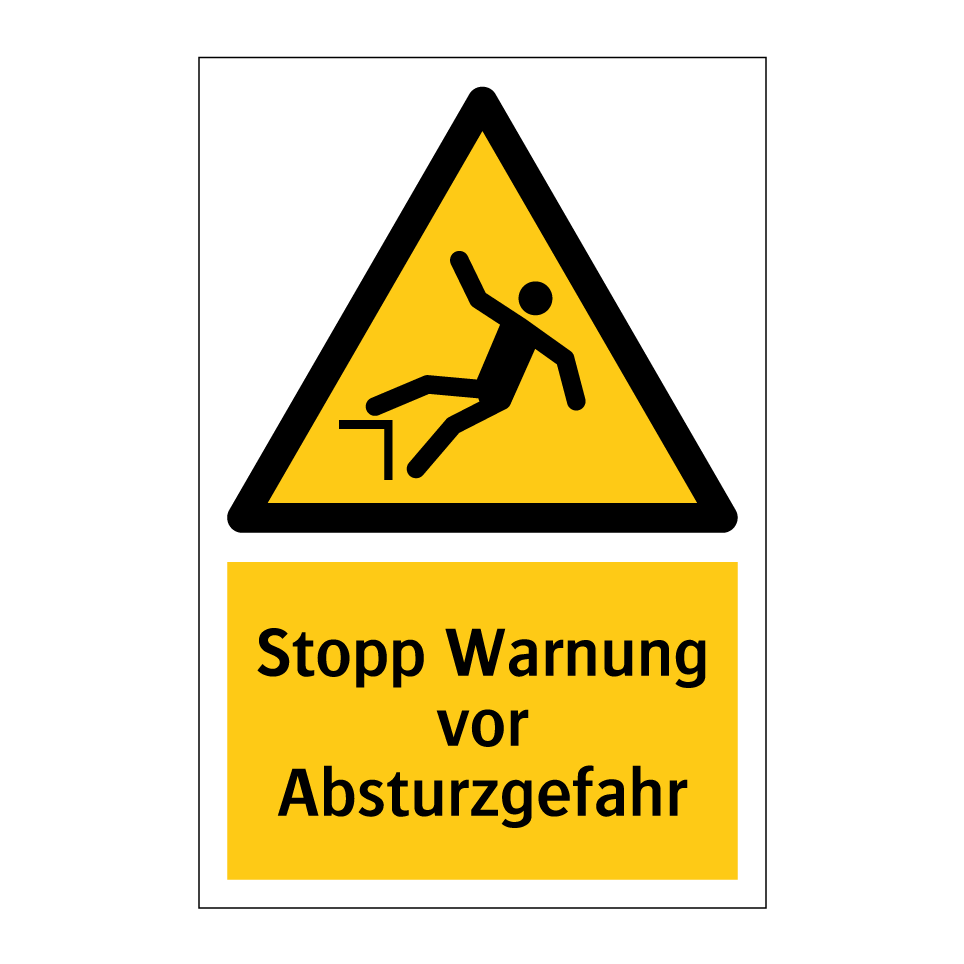 Warnschild mit dem Text Stopp Warnung vor Absturzgefahr