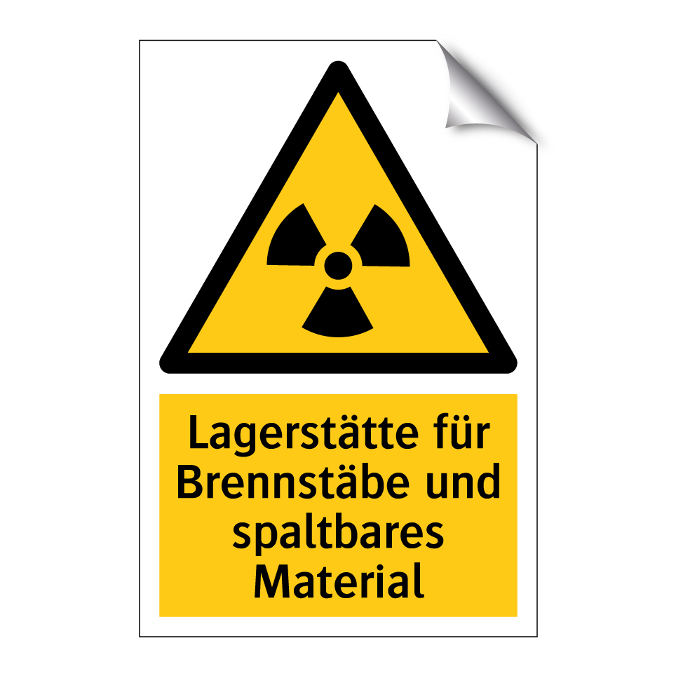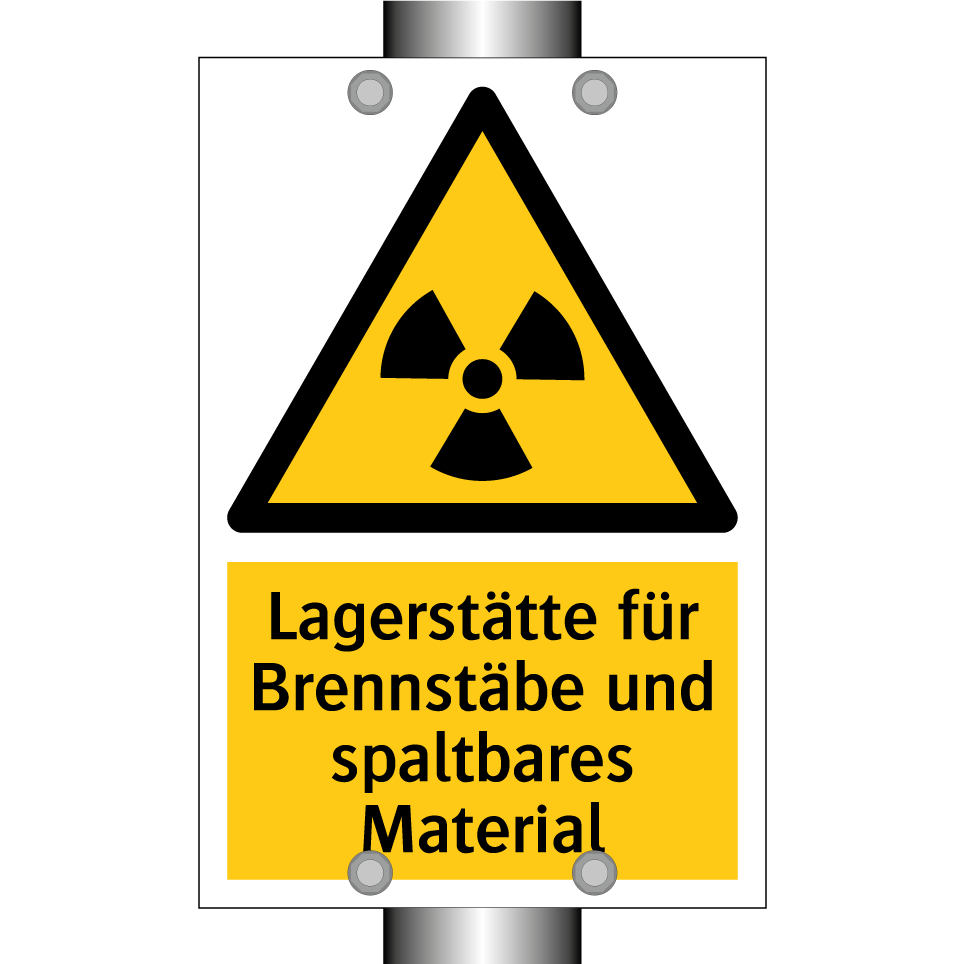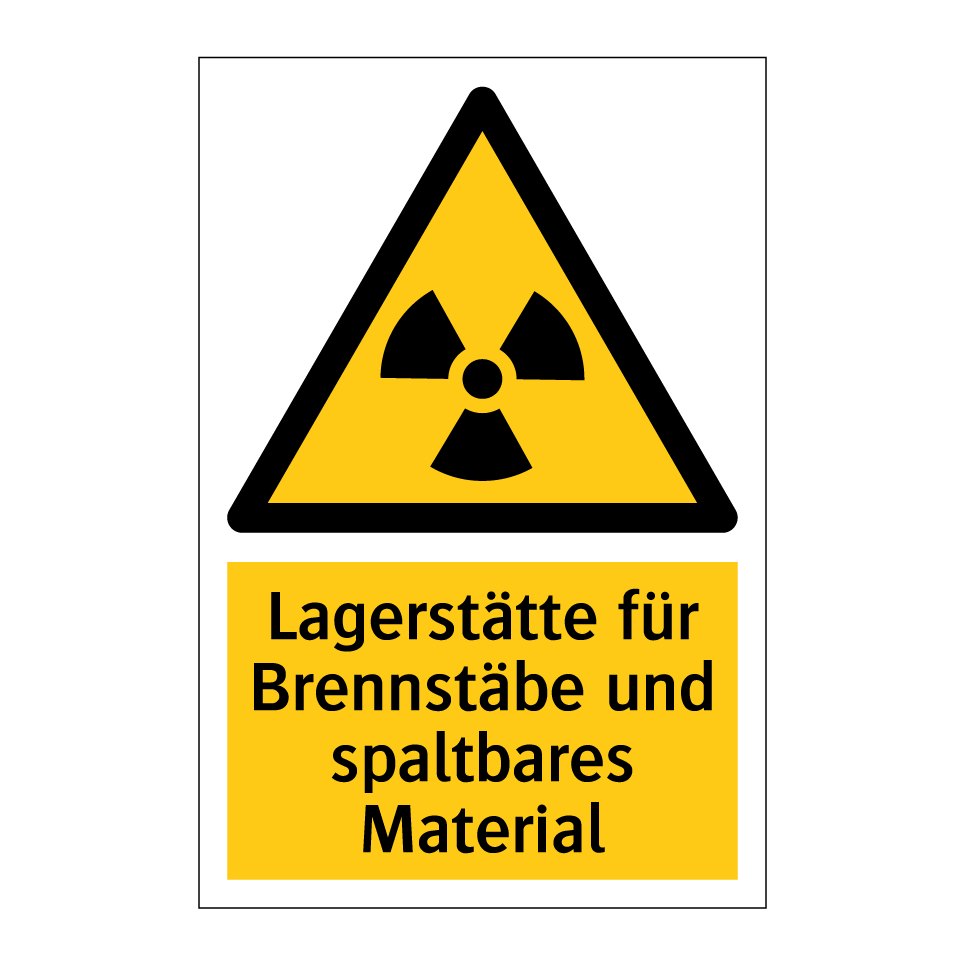 Warnschild mit dem Text Lagerstätte für Brennstäbe und spaltbares Material