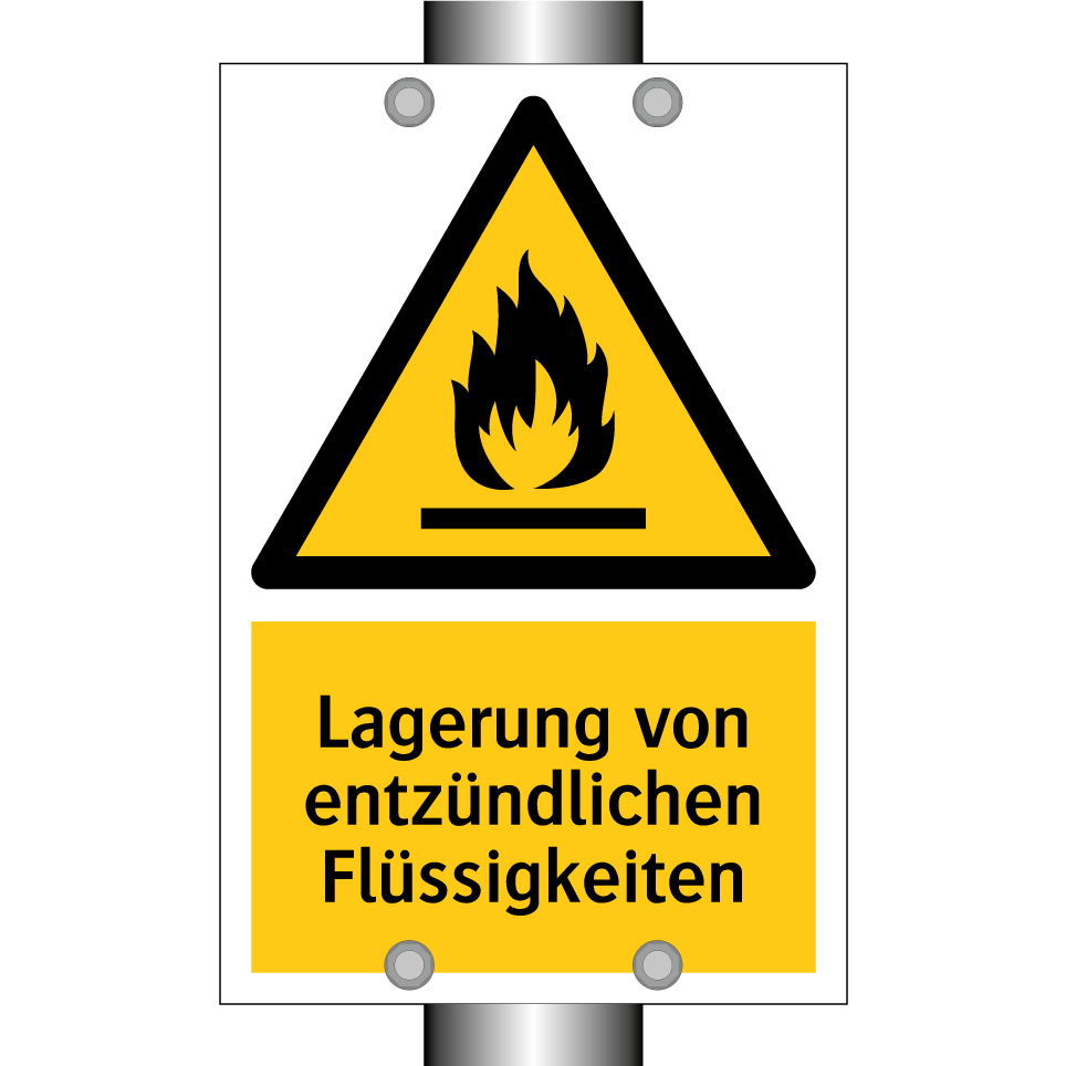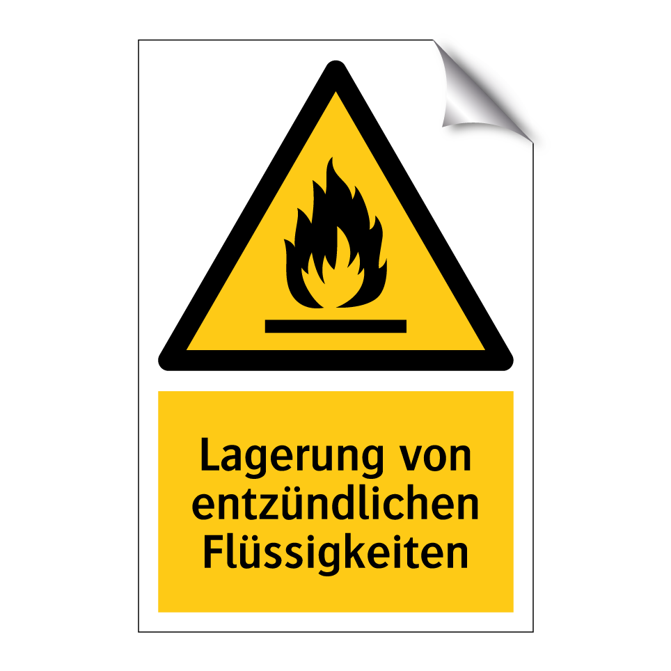 Warnschild mit dem Text Lagerung von entzündlichen Flüssigkeiten