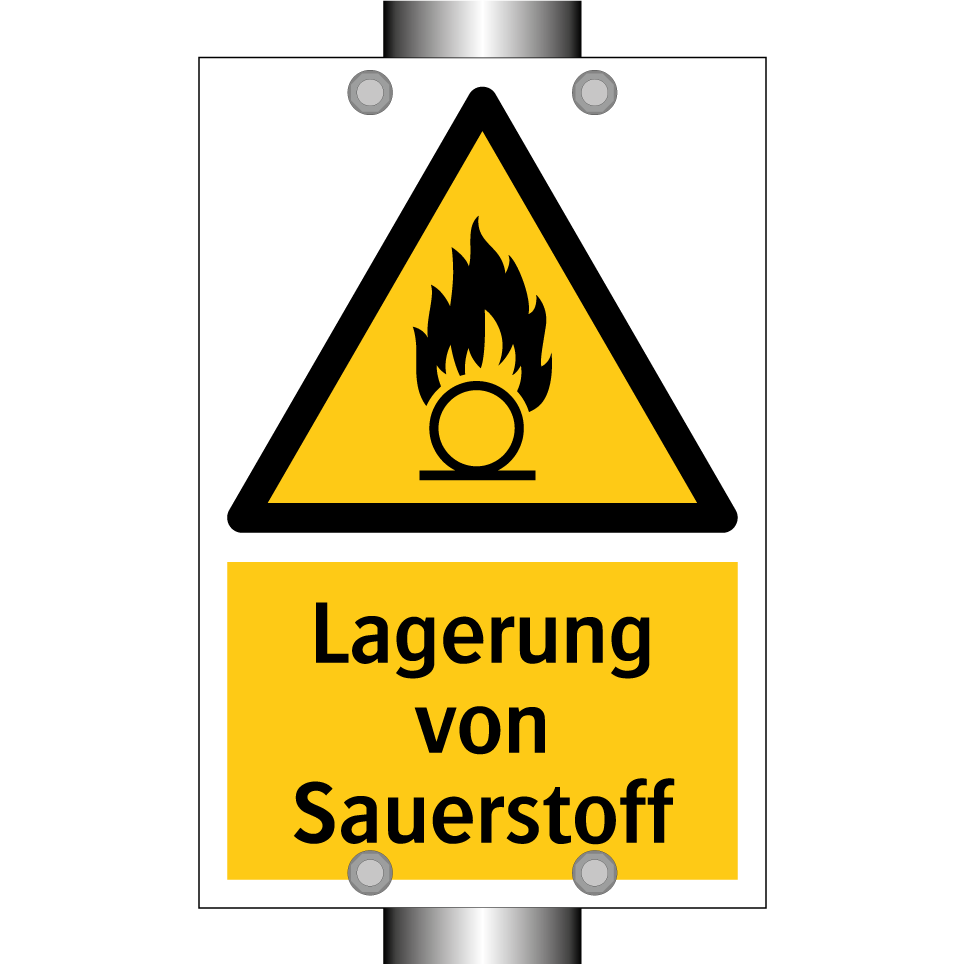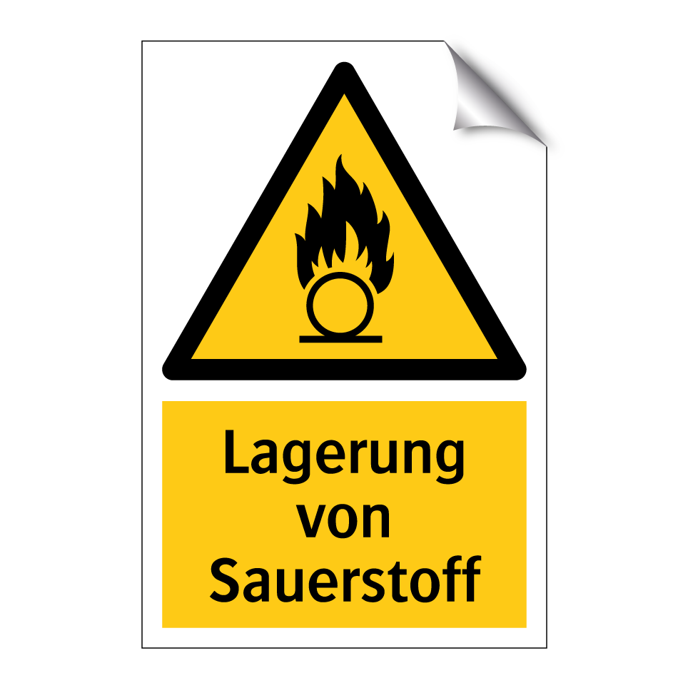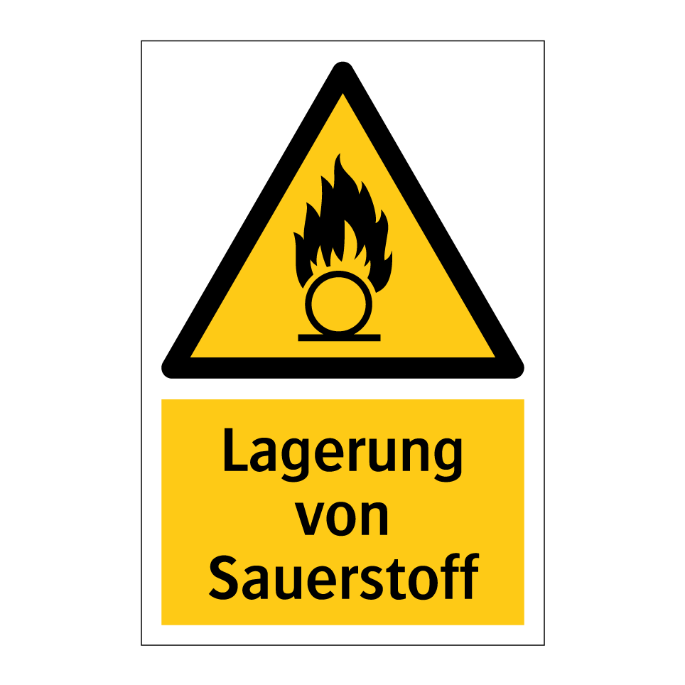 Warnschild mit dem Text Lagerung von Sauerstoff