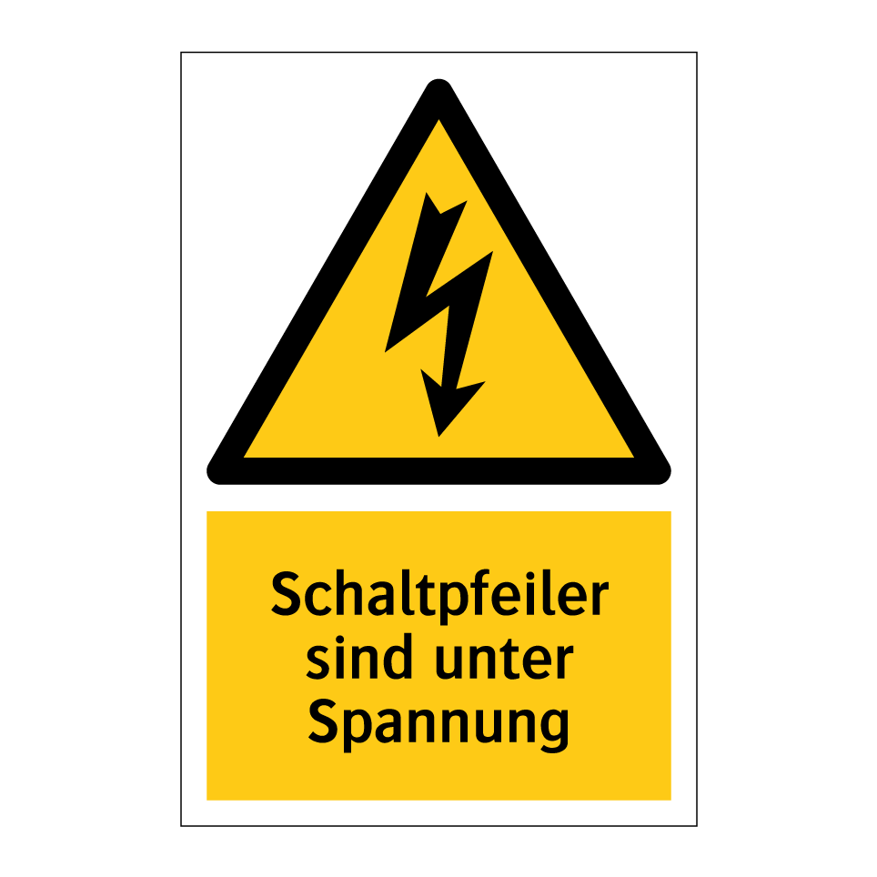 Warnschild mit dem Text Schaltpfeiler sind unter Spannung