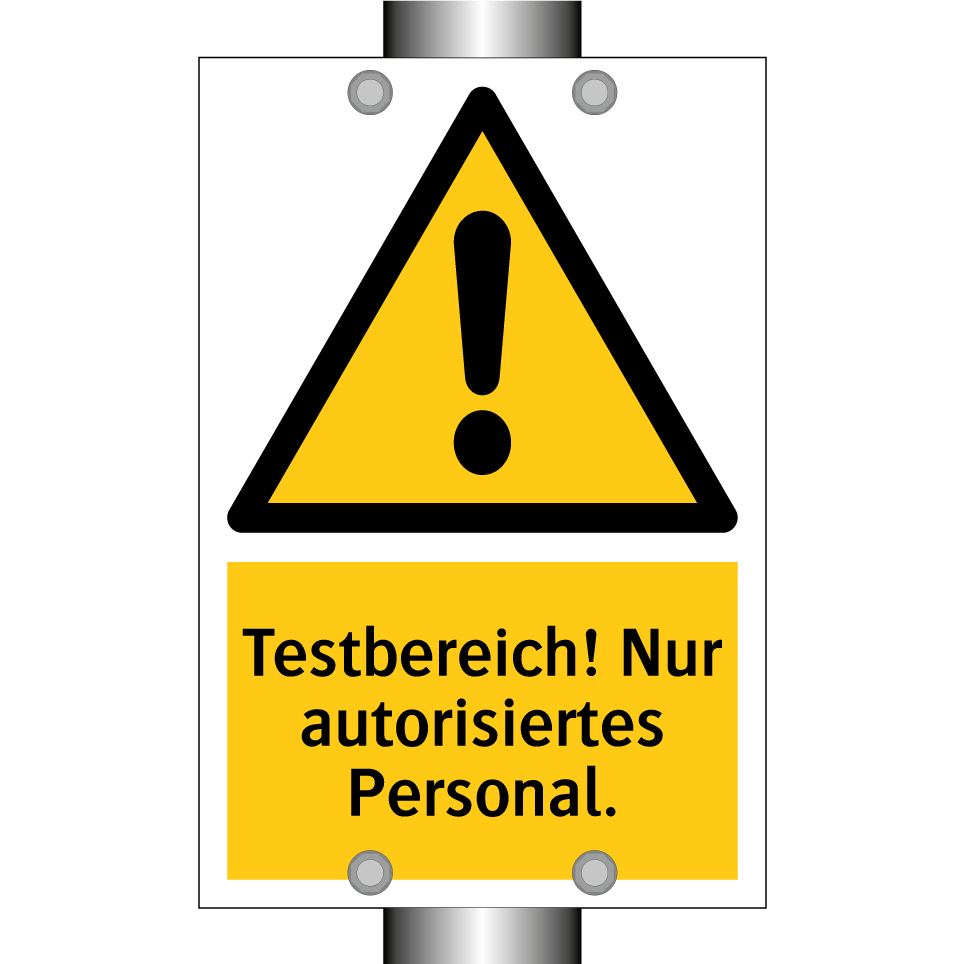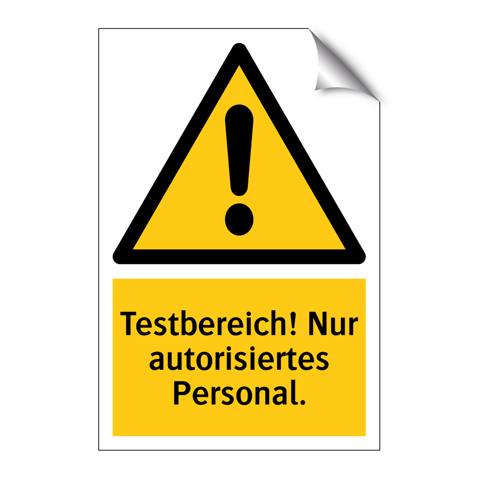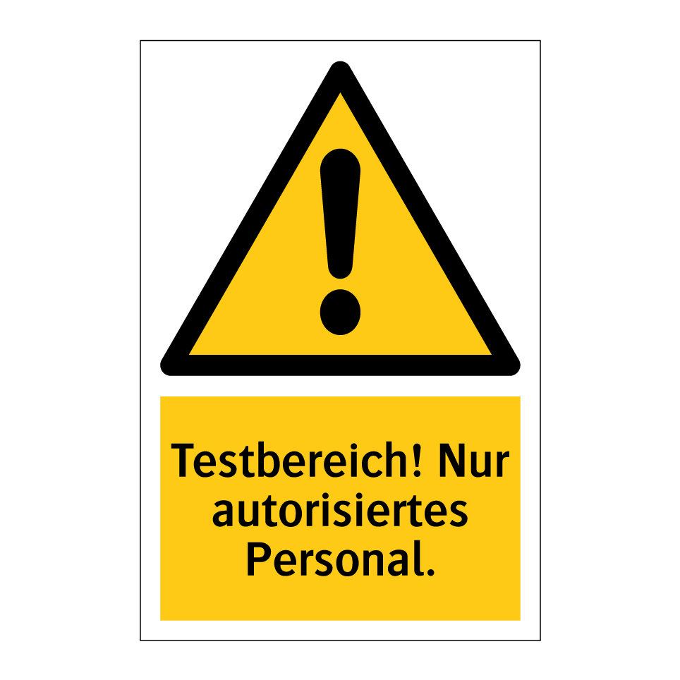 Warnschild mit dem Text Testbereich! Nur autorisiertes Personal.