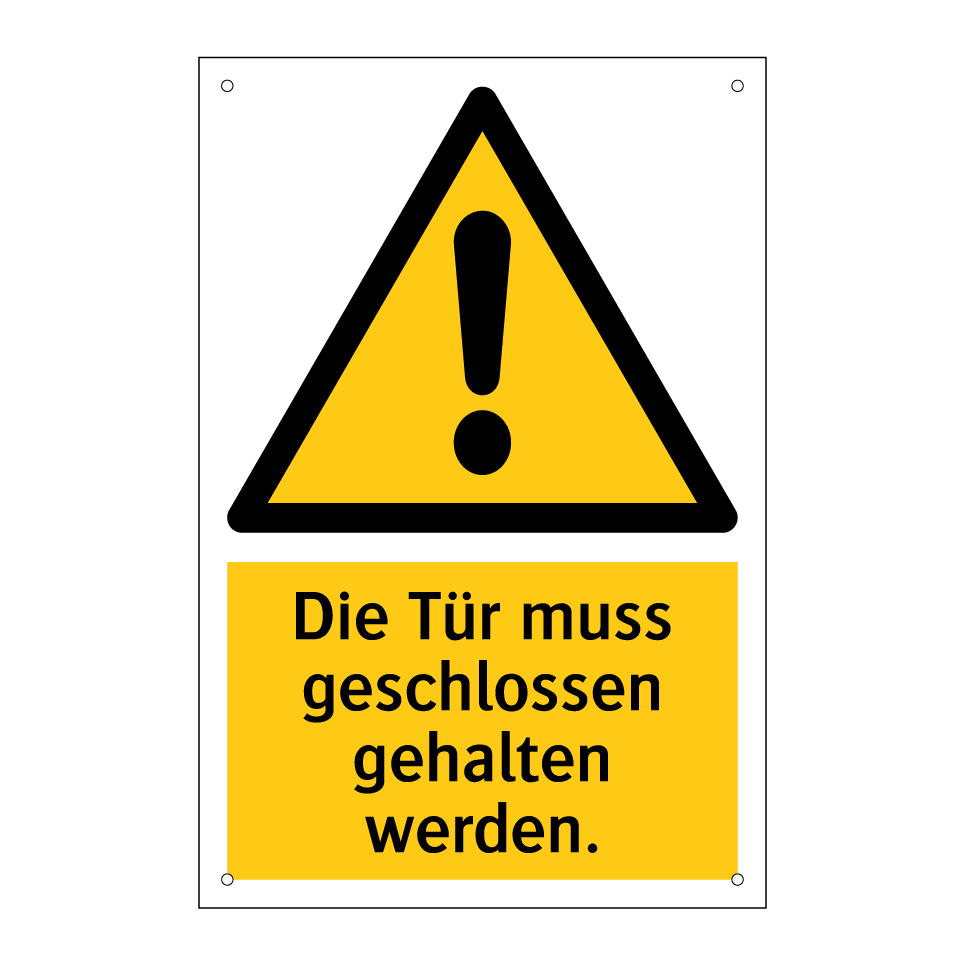 Warnschild mit dem Text Die Tür muss geschlossen gehalten werden.