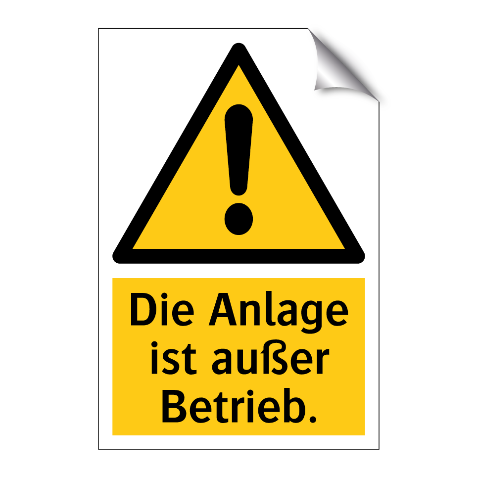 Warnschild mit dem Text Die Anlage ist außer Betrieb.
