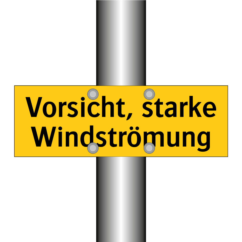Warnschild mit dem Text Vorsicht, starke Windströmung