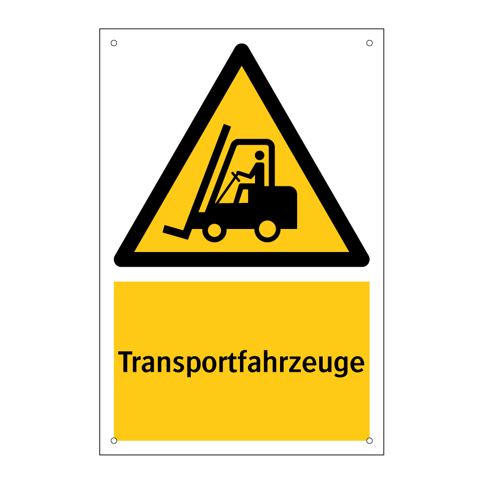 Warnschild mit dem Text Transportfahrzeuge