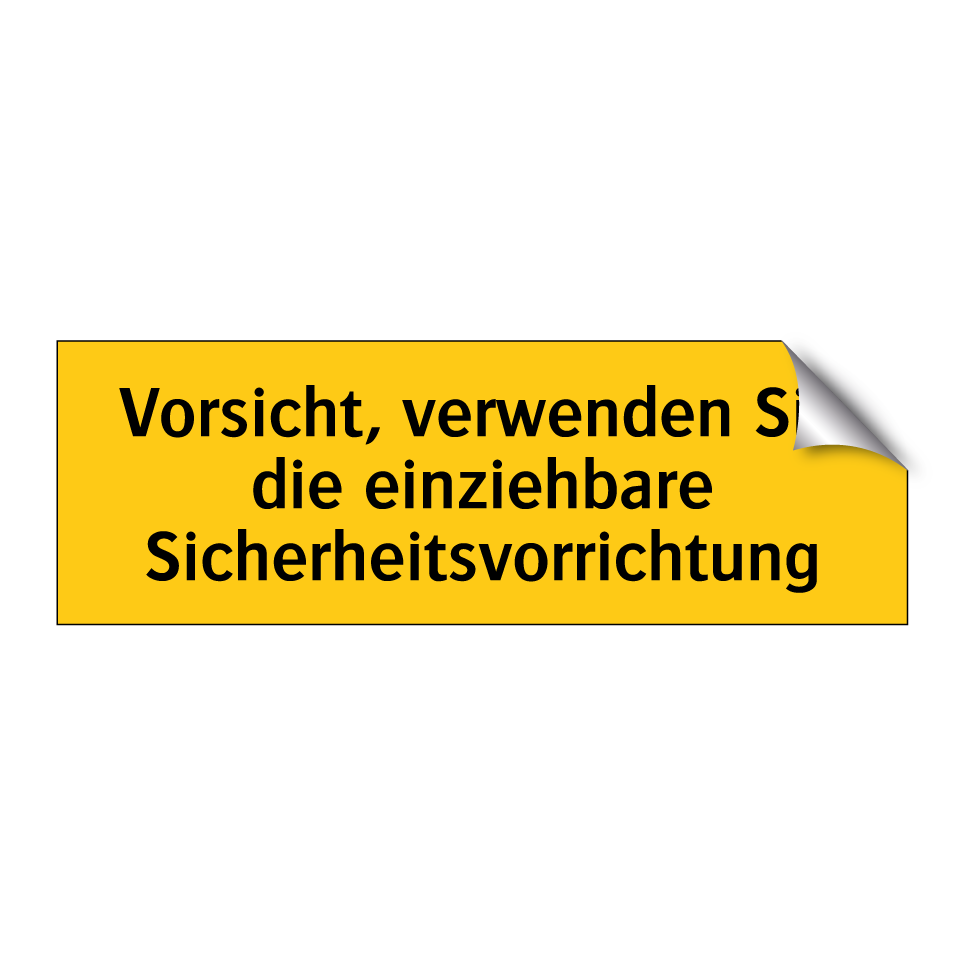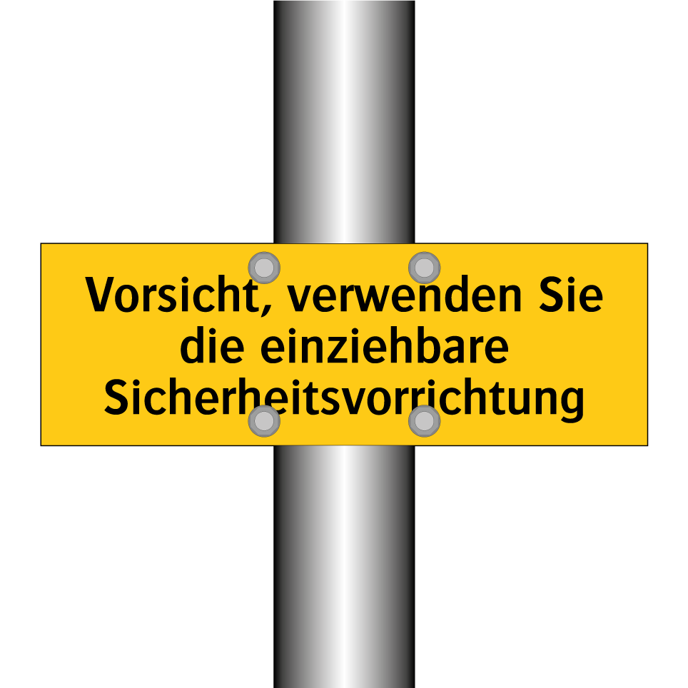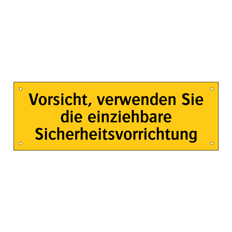 Warnschild mit dem Text Vorsicht, verwenden Sie die einziehbare Sicherheitsvorrichtung