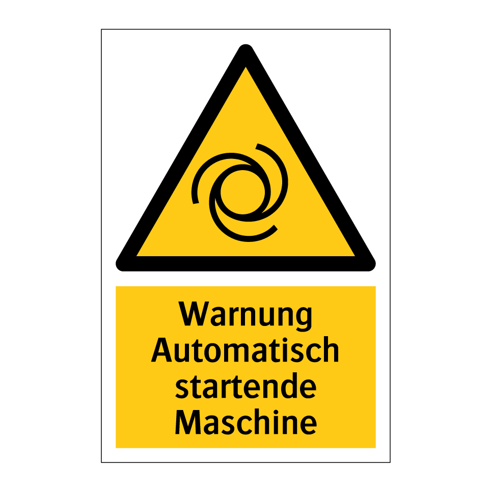 Warnschild mit dem Text Warnung Automatisch startende Maschine