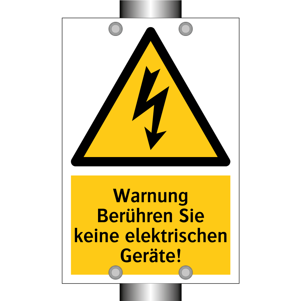 Warnschild mit dem Text Warnung Berühren Sie keine elektrischen Geräte!