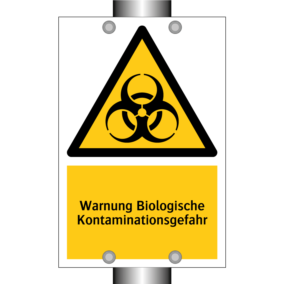 Warnschild mit dem Text Warnung Biologische Kontaminationsgefahr