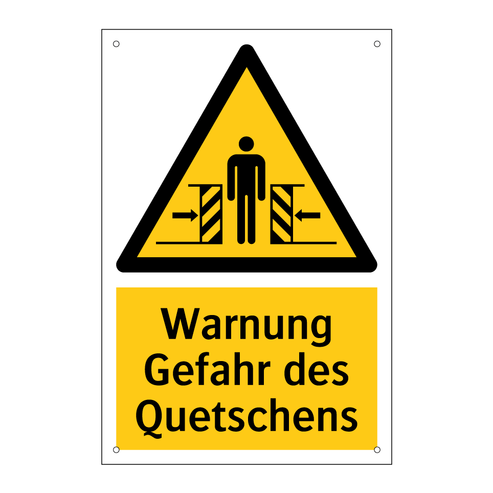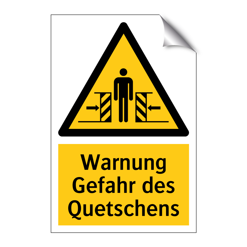 Warnschild mit dem Text Warnung Gefahr des Quetschens
