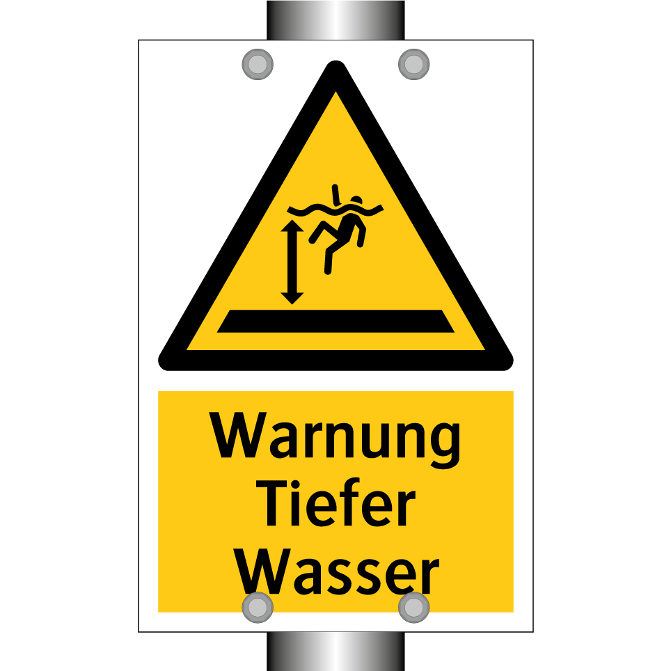 Warnschild mit dem Text Warnung Tiefer Wasser