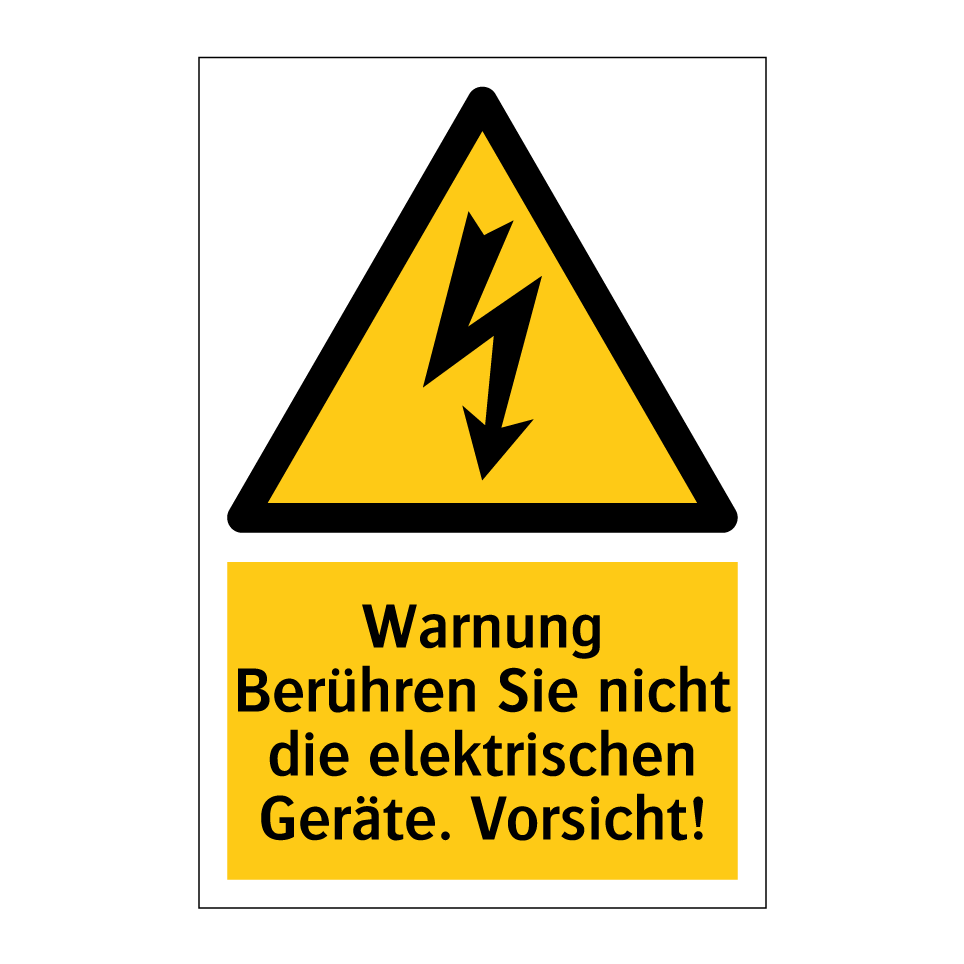 Diese auffällige Warnschild ist ideal für den Einsatz in Bereichen, in denen elektrische Geräte betrieben werden. Sie dient dazu, Personen vor den Gefahren des Berührens solcher Geräte zu warnen und somit Unfälle zu vermeiden. Die gelbe Hintergrundfarbe und die schwarze Schrift sorgen für maximale Sichtbarkeit und Verständlichkeit. Diese Warnschilder sind besonders geeignet für industrielle Umgebungen, Werkstätten oder technische Räume, wo erhöhte Vorsicht geboten ist. Platzieren Sie die Warnung an gut sichtbaren Stellen, um sicherzustellen, dass alle Personen in der Nähe auf die potenziellen Gefahren aufmerksam gemacht werden.