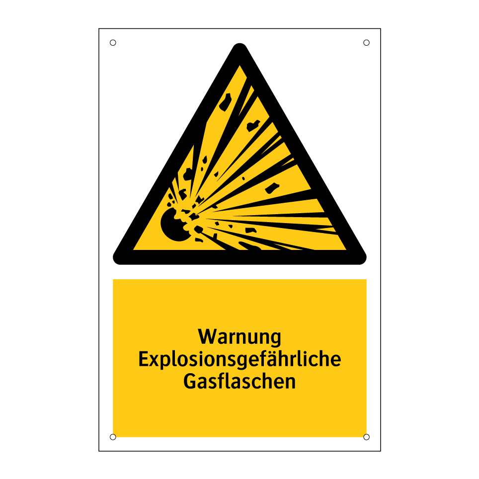 Diese auffällige Warnschild mit gelbem Hintergrund und schwarzer Schrift ist ideal, um auf die Gefahr von explosionsgefährlichen Gasflaschen hinzuweisen. Sie eignet sich hervorragend für den Einsatz in Industrieanlagen, Laboren oder Lagerbereichen, wo der Umgang mit Gasflaschen alltäglich ist. Durch die klare Symbolik und die prägnante Botschaft wird die Aufmerksamkeit der Mitarbeiter und Besucher effektiv auf potenzielle Gefahren gelenkt. Platzieren Sie das Warnschild an gut sichtbaren Stellen wie Eingängen, Lagerräumen oder in der Nähe von Arbeitsbereichen, um die Sicherheit zu erhöhen und Unfälle zu vermeiden. Diese Warnschilder sind ein unverzichtbares Element in jedem Sicherheitskonzept.