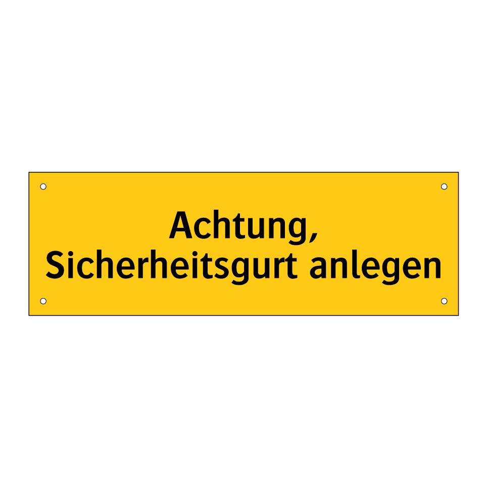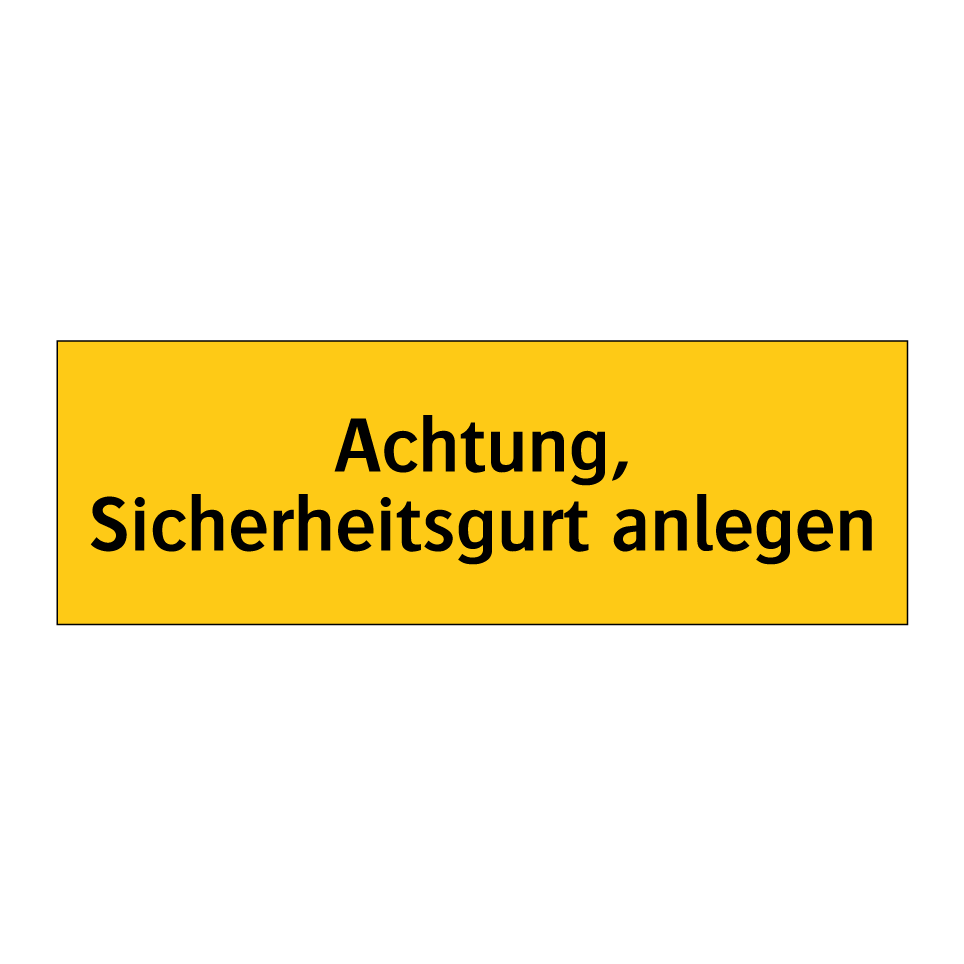 Warnschild mit dem Text Achtung, Sicherheitsgurt anlegen