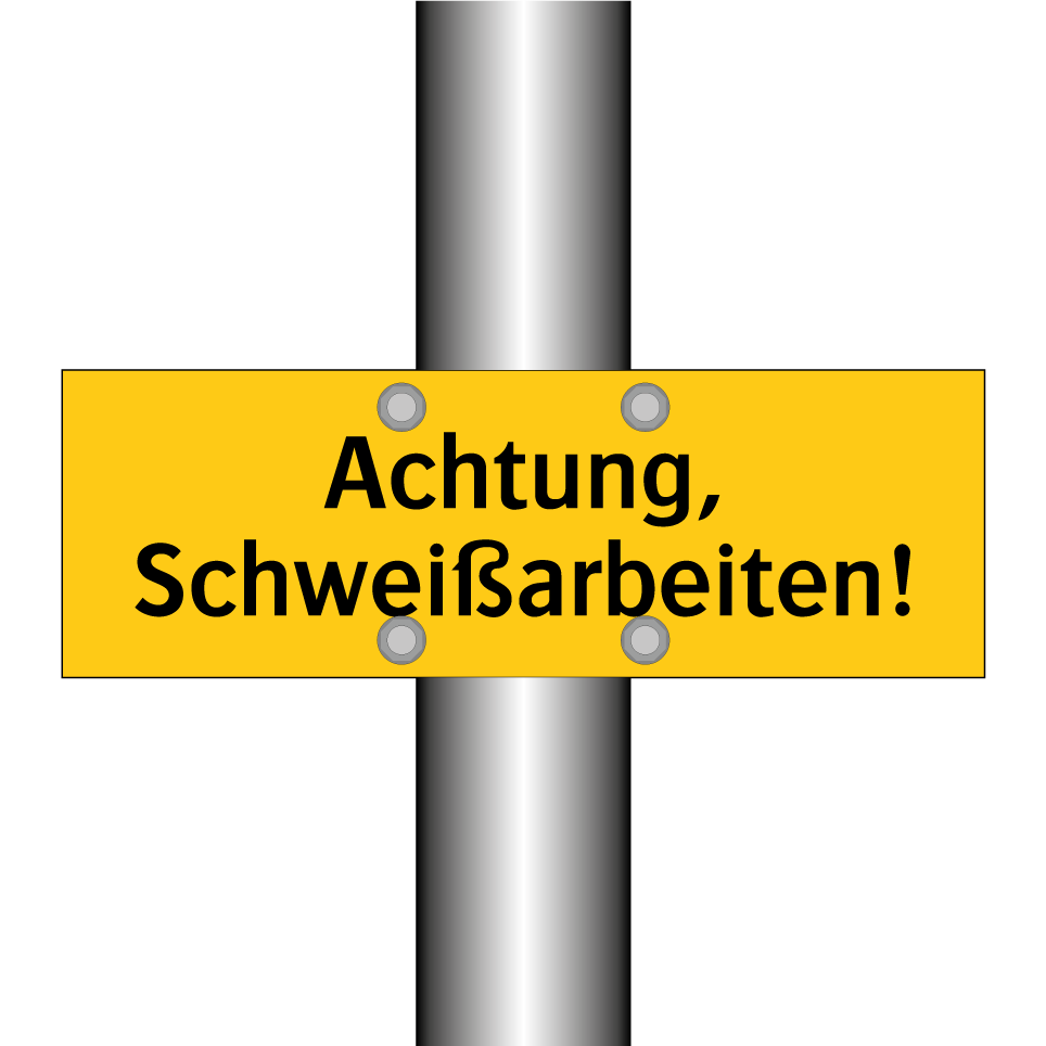 Warnschild mit dem Text Achtung, Schweißarbeiten!
