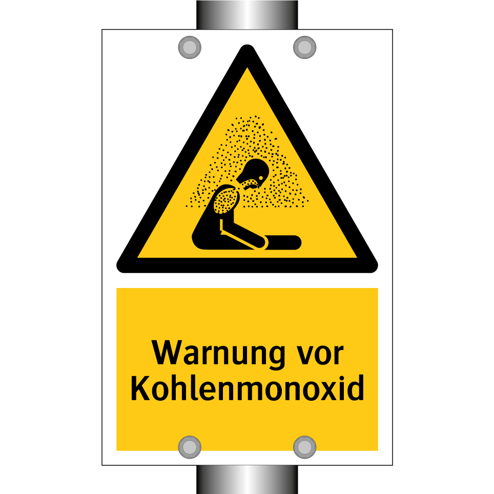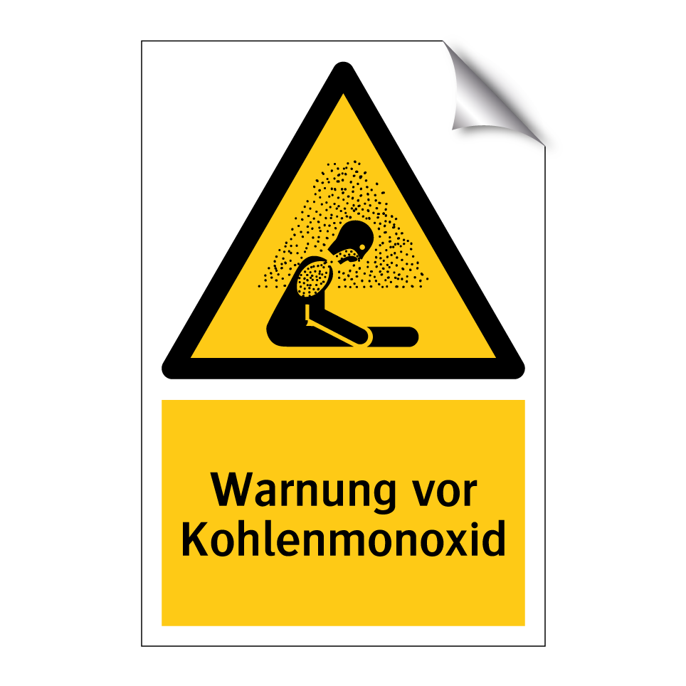 Warnschild mit dem Text Warnung vor Kohlenmonoxid