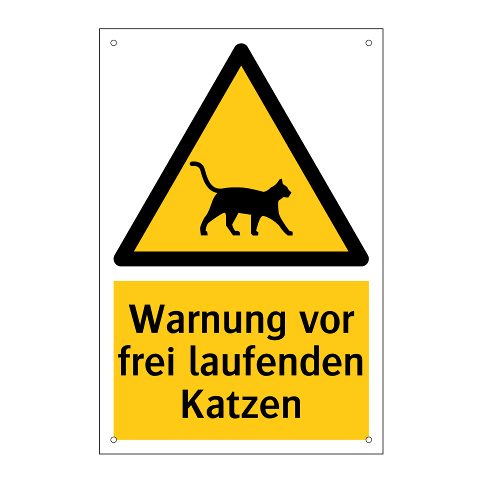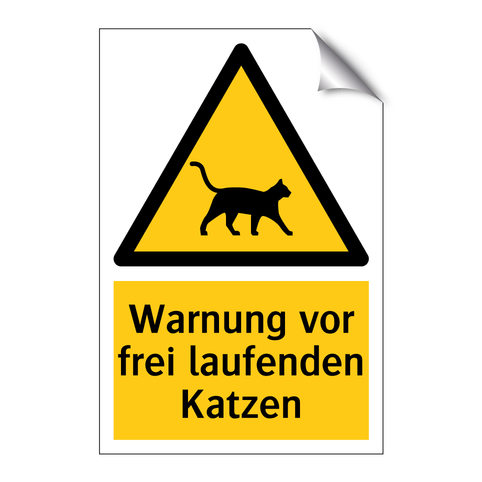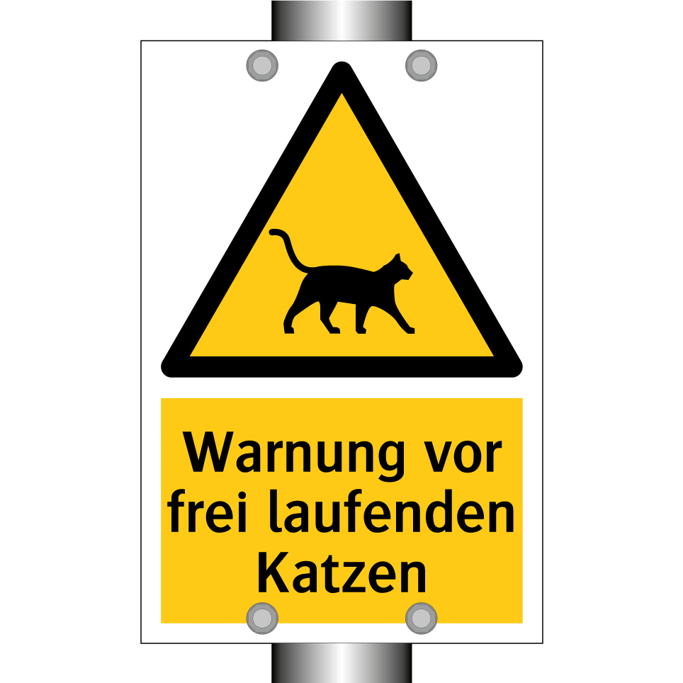 Warnschild mit dem Text Warnung vor frei laufenden Katzen