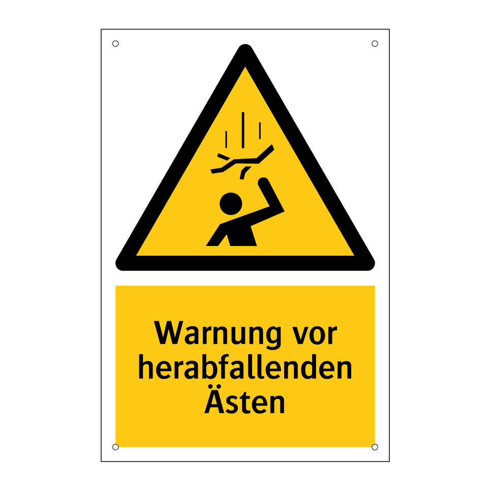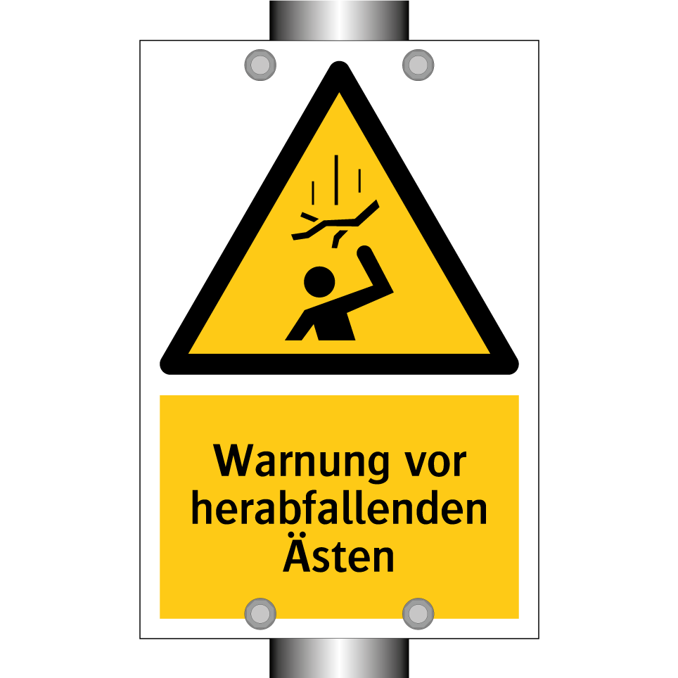 Warnschild mit dem Text Warnung vor herabfallenden Ästen