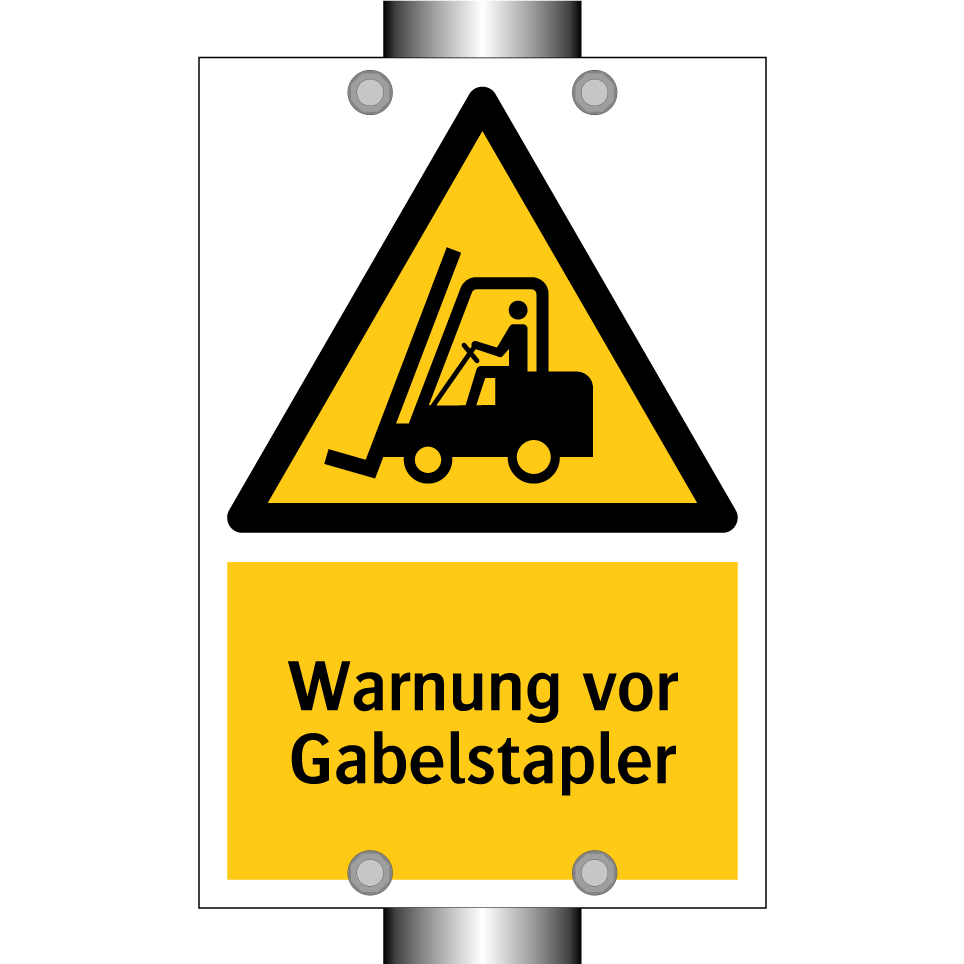 Warnschild mit dem Text Warnung vor Gabelstapler