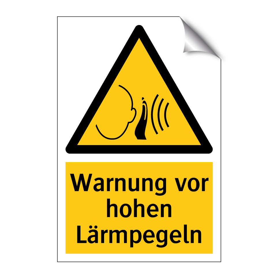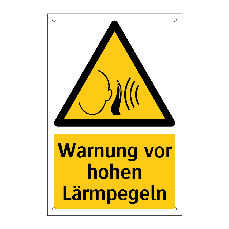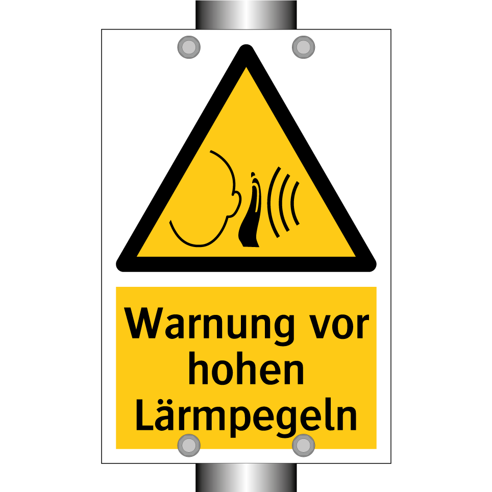 Warnschild mit dem Text Warnung vor hohen Lärmpegeln