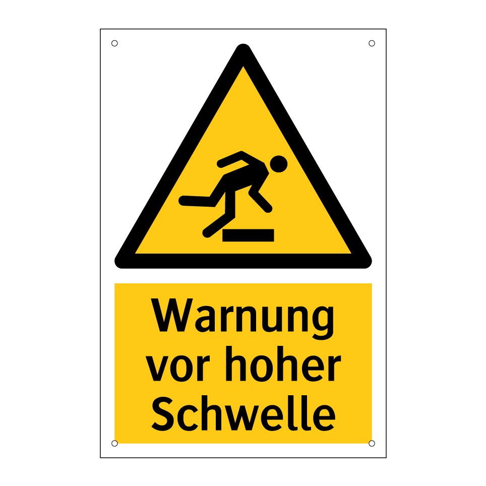 Warnschild mit dem Text Warnung vor hoher Schwelle