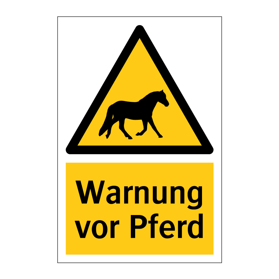 Warnschild mit dem Text Warnung vor Pferd