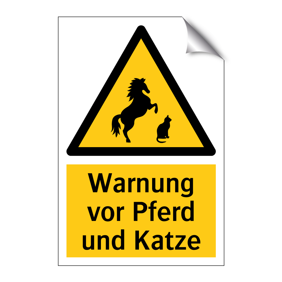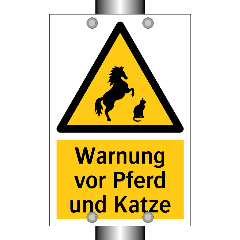 Warnschild mit dem Text Warnung vor Pferd und Katze