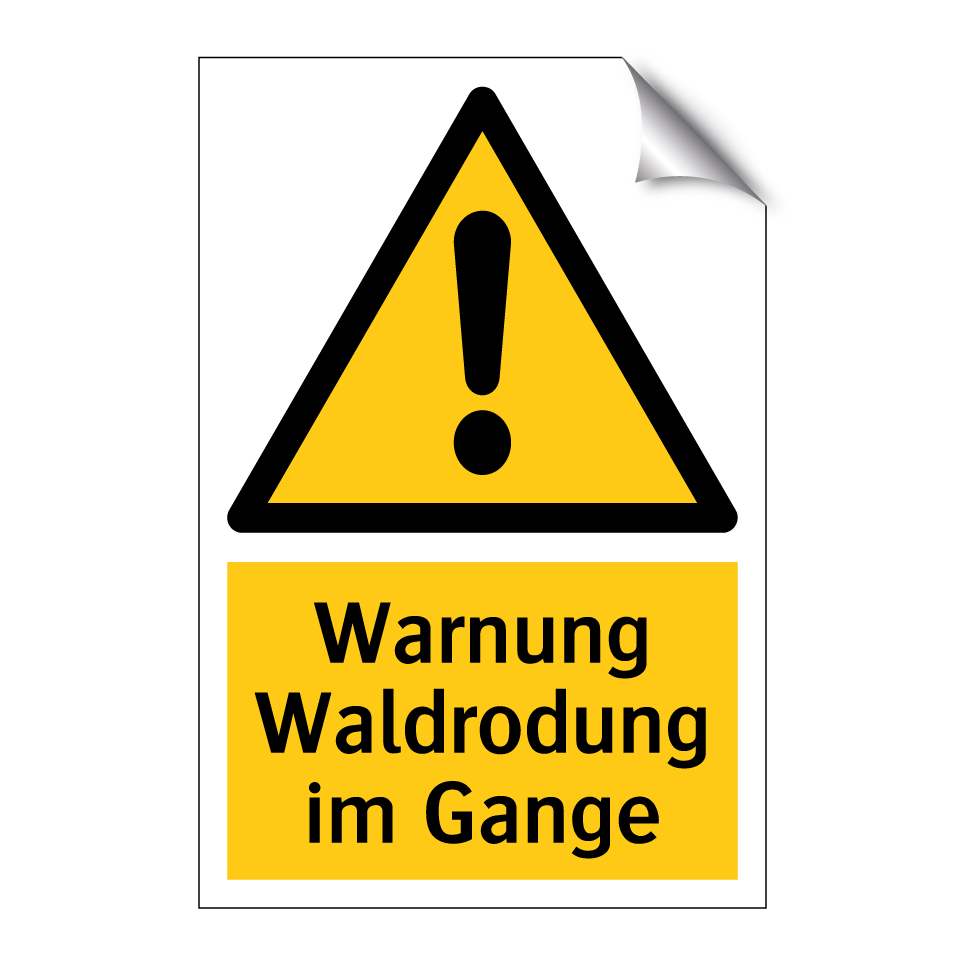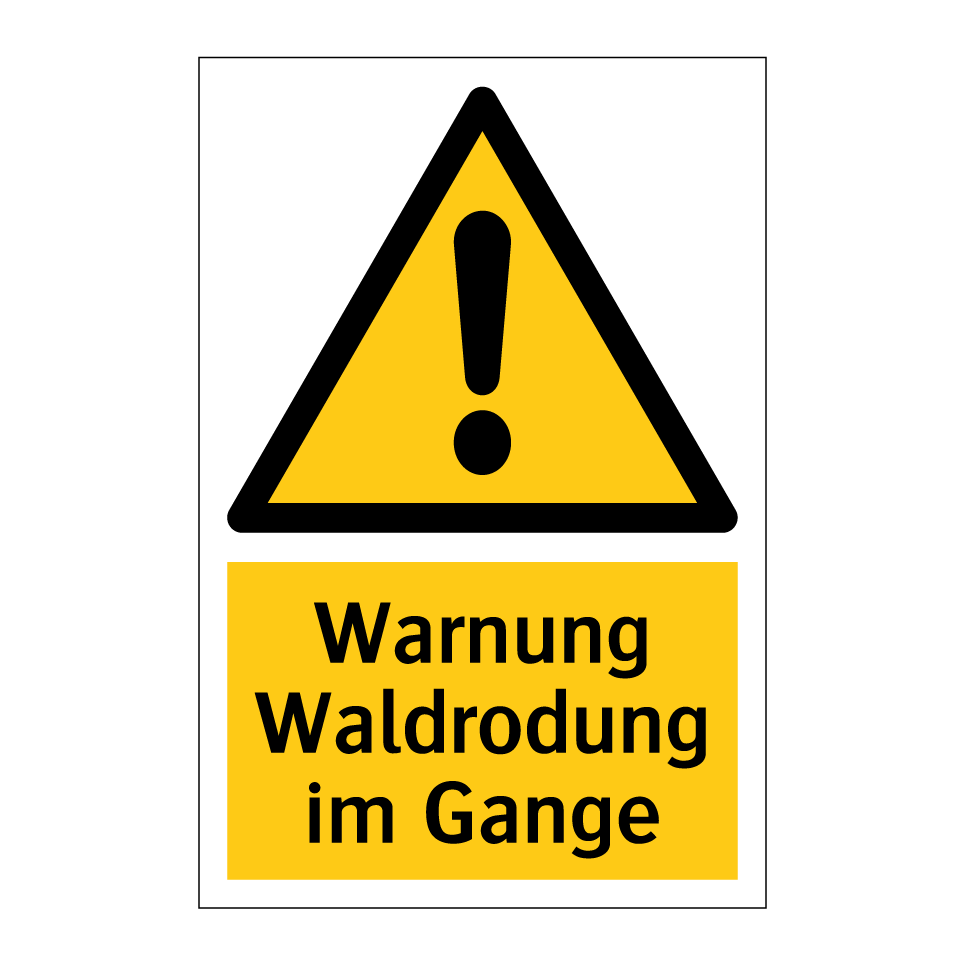 Warnschild mit dem Text Warnung Waldrodung im Gange