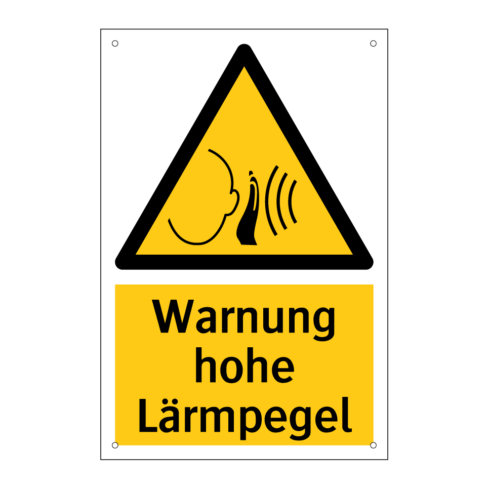 Warnschild mit dem Text Warnung hohe Lärmpegel