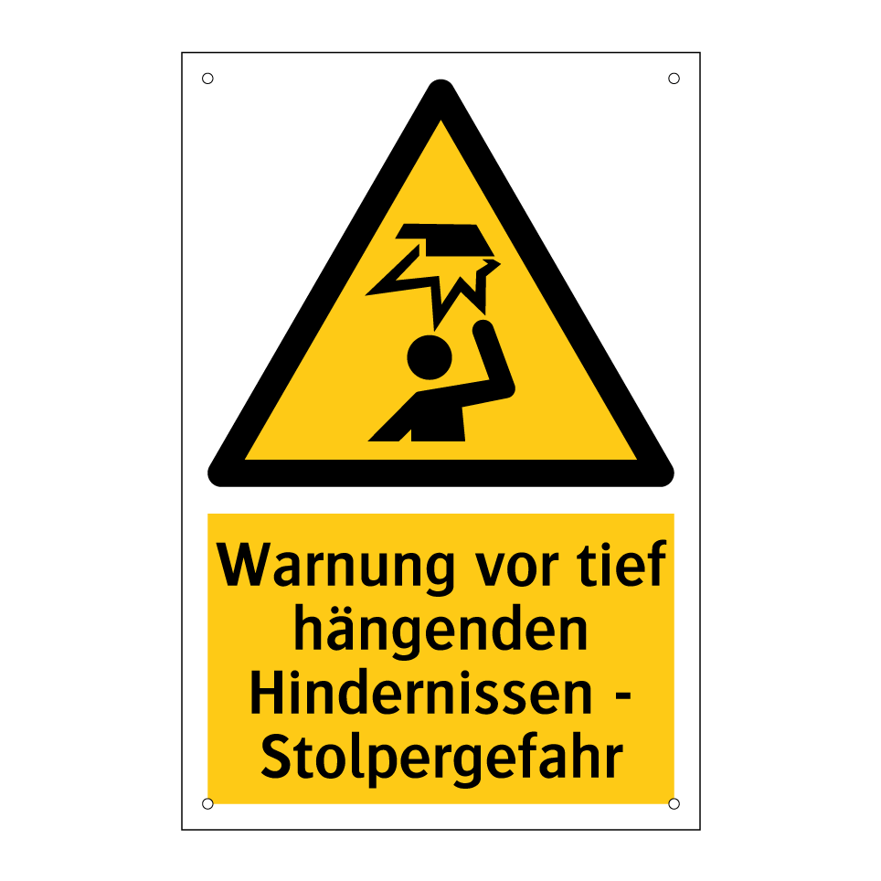Diese Warnschild ist ein unverzichtbares Element zur Gewährleistung der Sicherheit in Bereichen mit tief hängenden Hindernissen. Ideal für Lagerhallen, Baustellen oder Parkhäuser, wo die Gefahr des Stolperns besteht. Die auffällige gelbe Hintergrundfarbe und die schwarze Schrift mit Symbol machen es leicht erkennbar und ziehen sofort die Aufmerksamkeit auf sich. Platzieren Sie dieses Warnschild an strategischen Punkten, um Mitarbeiter und Besucher effektiv auf potenzielle Gefahren hinzuweisen. Es dient als präventive Maßnahme, um Unfälle zu vermeiden und die Sicherheit in Ihrem Arbeitsumfeld zu erhöhen.