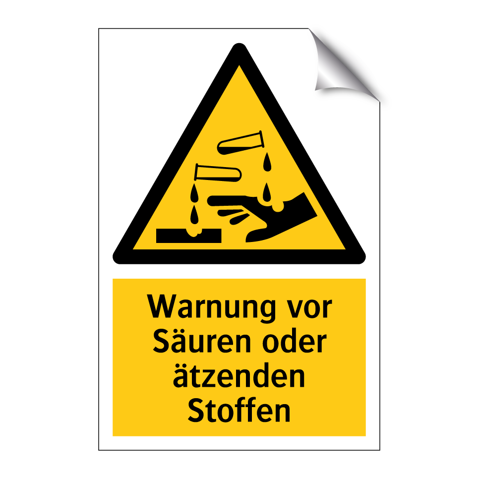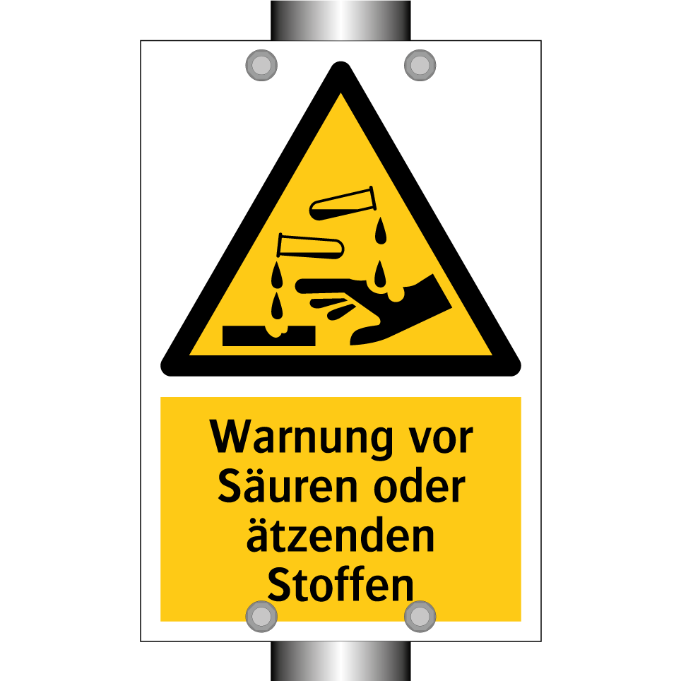 Warnschild mit dem Text Warnung vor Säuren oder ätzenden Stoffen
