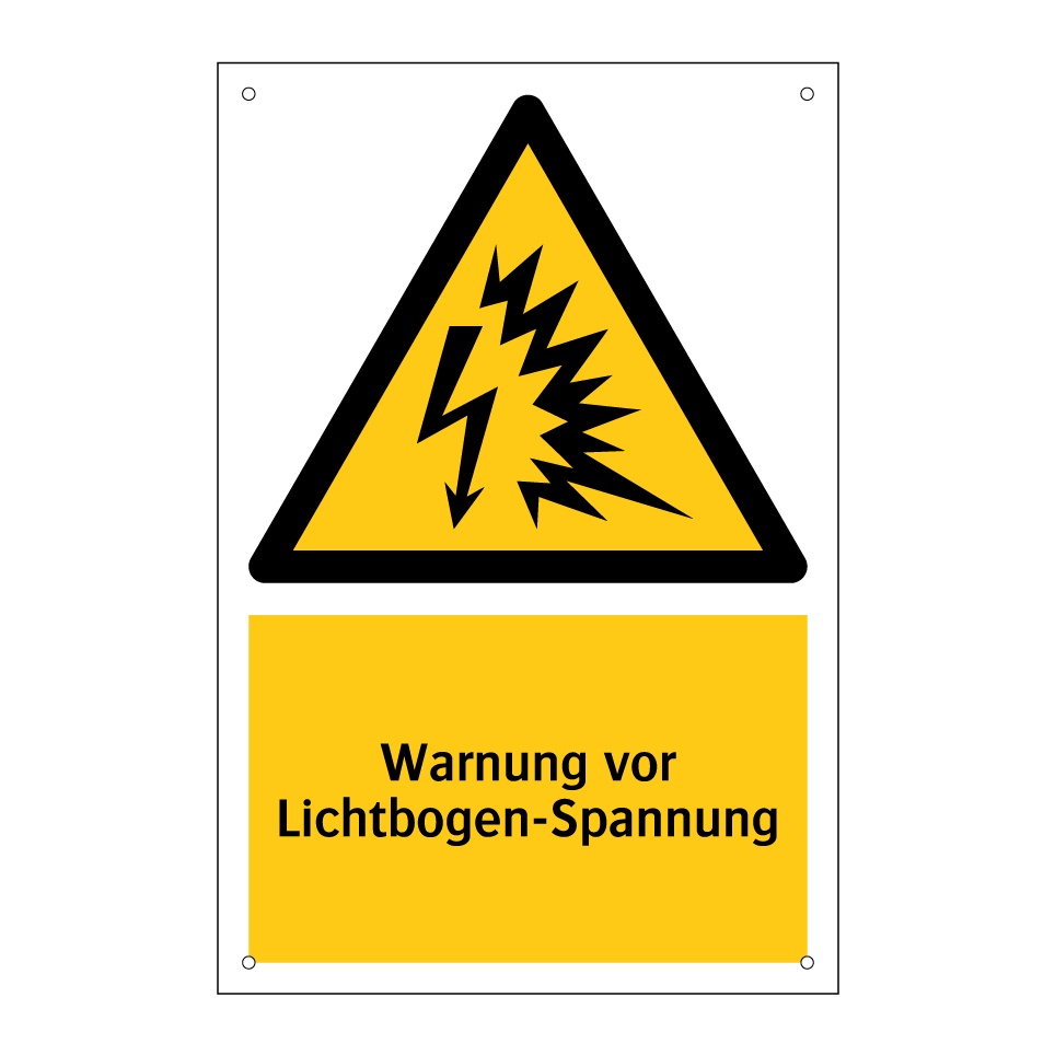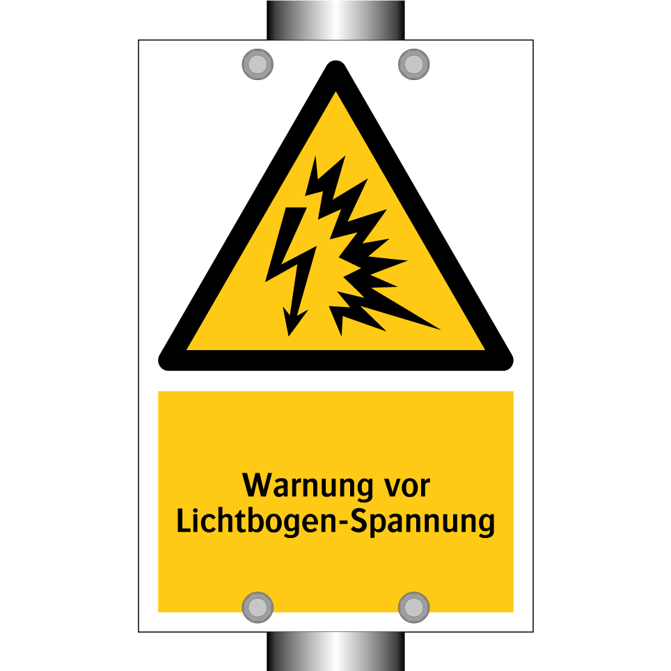 Warnschild mit dem Text Warnung vor Lichtbogen-Spannung