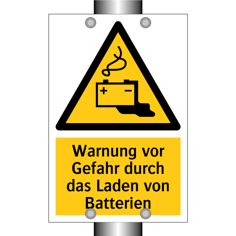 Warnschild mit dem Text Warnung vor Gefahr durch das Laden von Batterien
