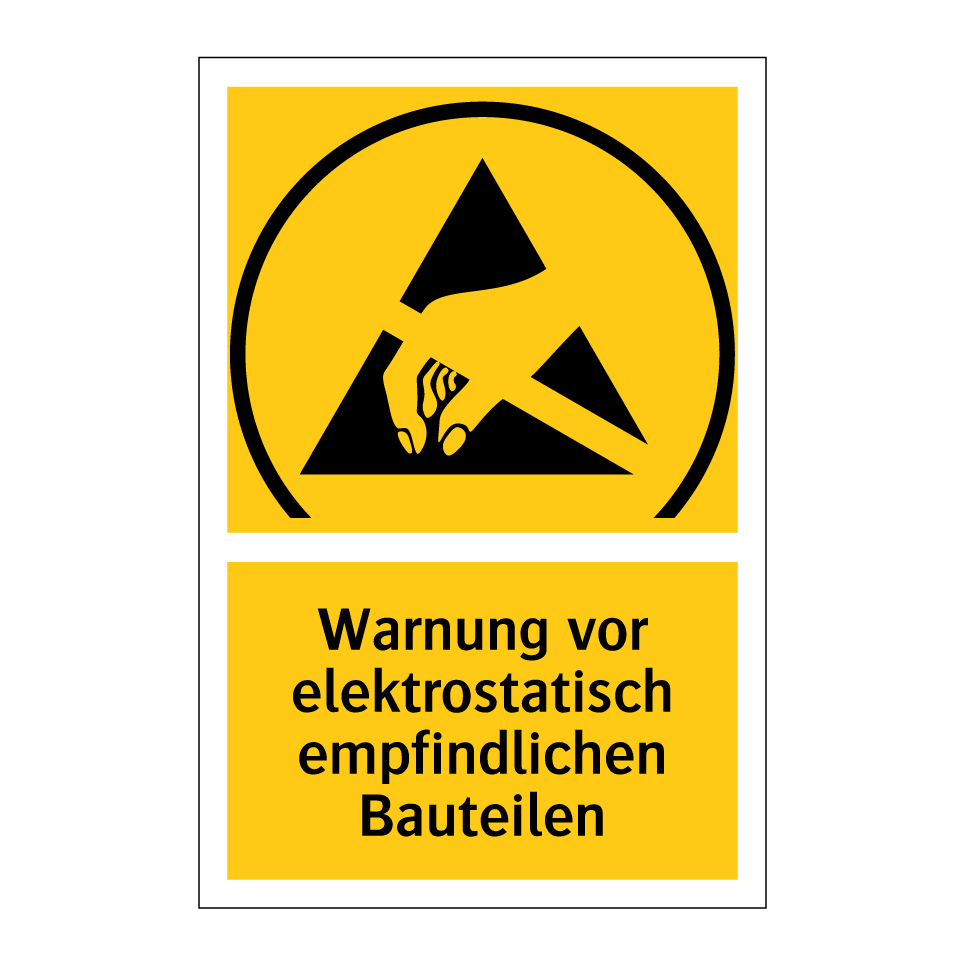 Warnschild mit dem Text Warnung vor elektrostatisch empfindlichen Bauteilen