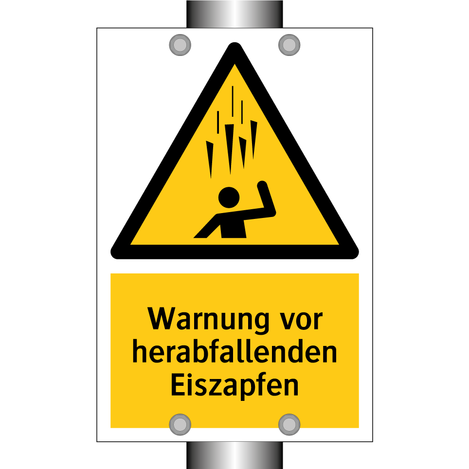 Diese auffällige Warnschild mit gelbem Hintergrund und schwarzer Schrift ist ideal, um auf die Gefahr von herabfallenden Eiszapfen hinzuweisen. Sie eignet sich hervorragend für den Einsatz in Bereichen, in denen Passanten vor potenziellen Gefahren gewarnt werden müssen, wie zum Beispiel an Gebäudefassaden, Dächern oder in der Nähe von Bäumen. Die klare Symbolik und die prägnante Botschaft sorgen dafür, dass die Warnung nicht übersehen wird. Platzieren Sie diese Warnschilder an gut sichtbaren Stellen, um die Sicherheit von Fußgängern zu gewährleisten und Unfälle zu vermeiden. Ideal für den Einsatz in städtischen Gebieten, wo das Risiko von herabfallendem Eis besonders hoch ist.