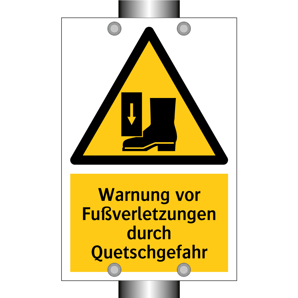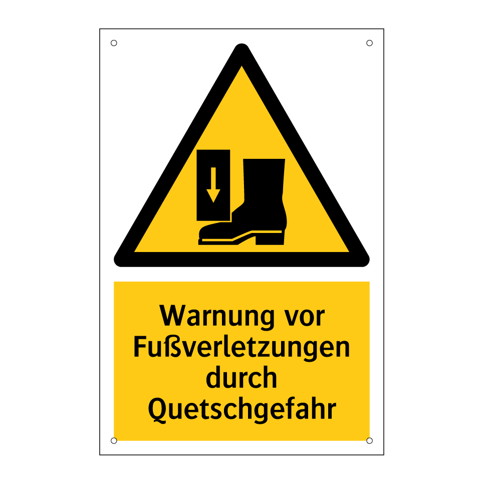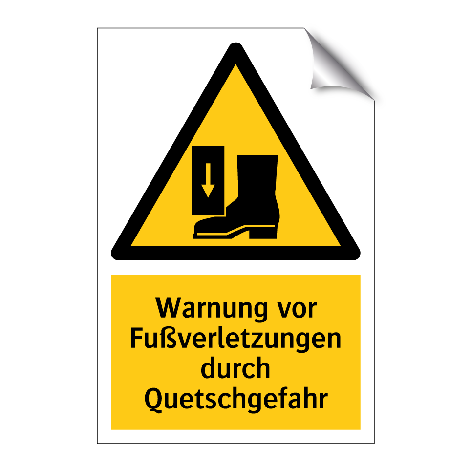 Warnschild mit dem Text Warnung vor Fußverletzungen durch Quetschgefahr