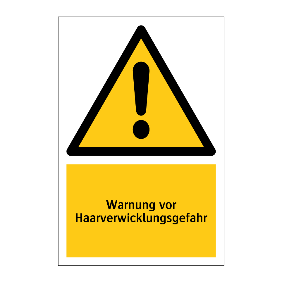 Warnschild mit dem Text Warnung vor Haarverwicklungsgefahr