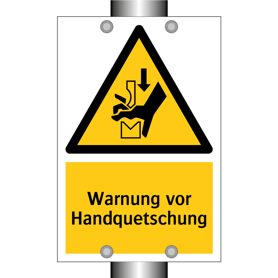 Warnschild mit dem Text Warnung vor Handquetschung